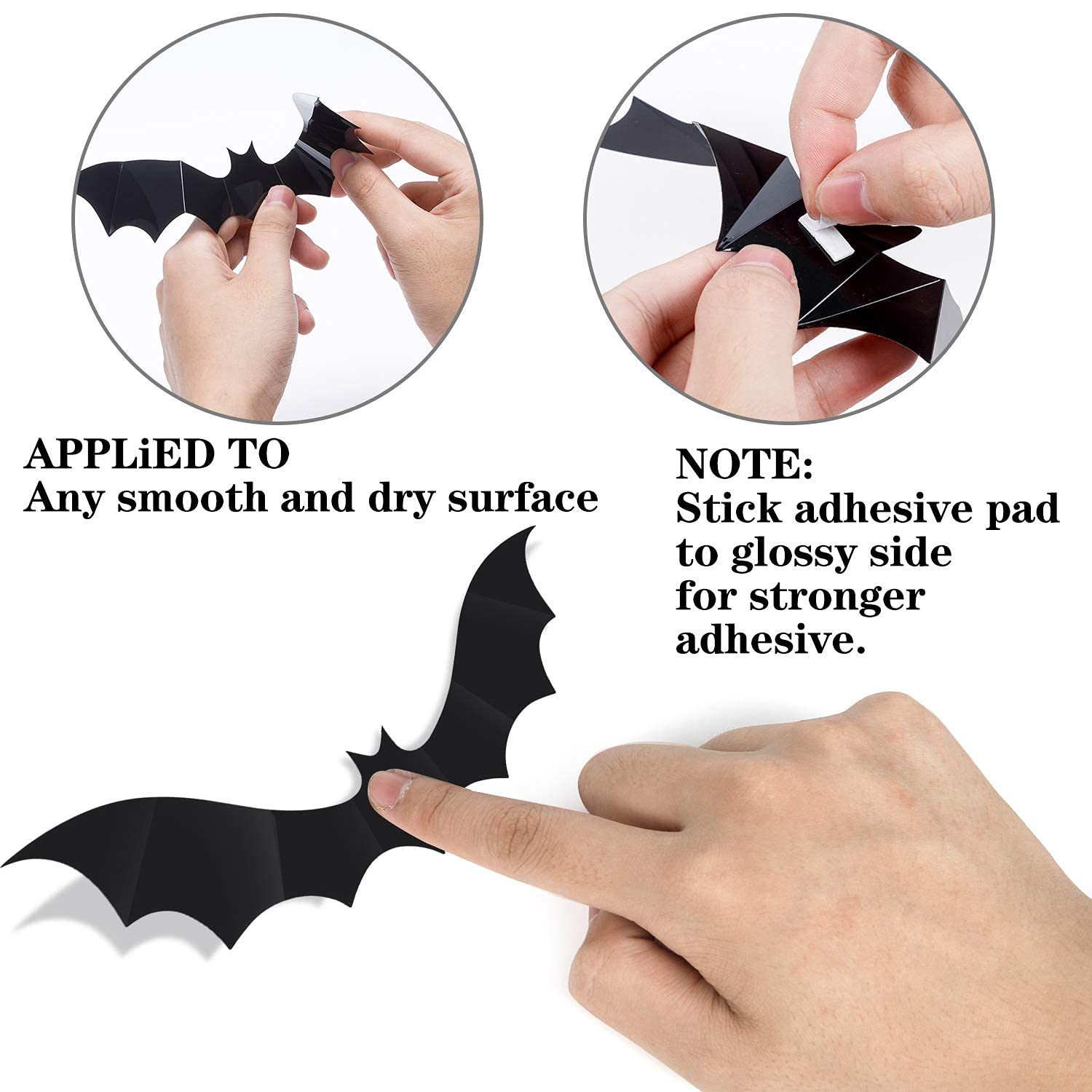 【広い使い範囲】3D立体こうもりステッカーハロウィン飾りとして自宅以外、お化け屋敷、店舗のインテリア、ハロウインパーティーに屋内の壁飾りに、部屋、窓、浴室、トイレ、冷蔵庫、キッチン、天井、ガラスなど、平らな場所なら場所を選ばず貼ることができます。気軽に式日の雰囲気を作れる。また学園祭、文化祭などのイベントで舞台や屋台の飾りとして魅力的に見せます。