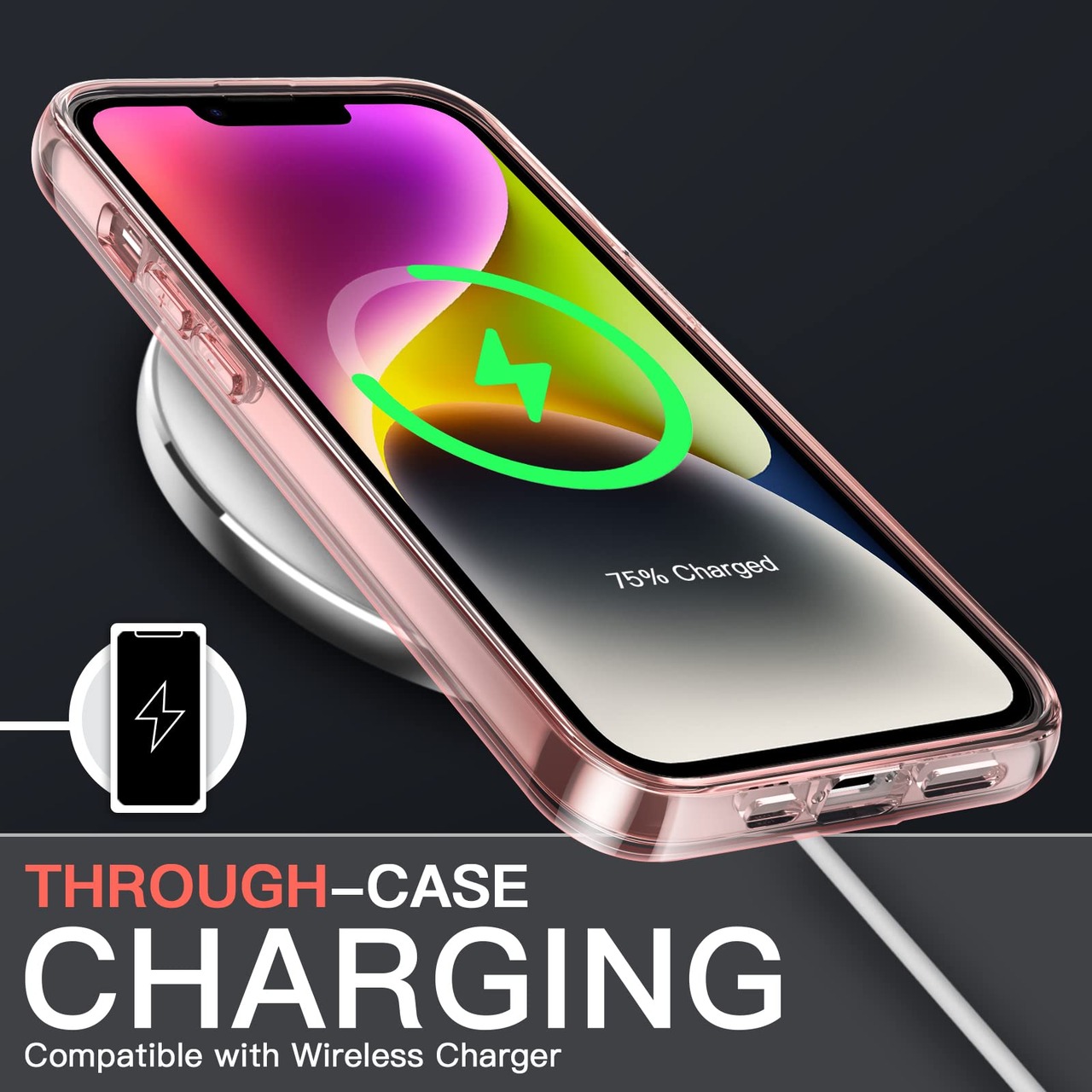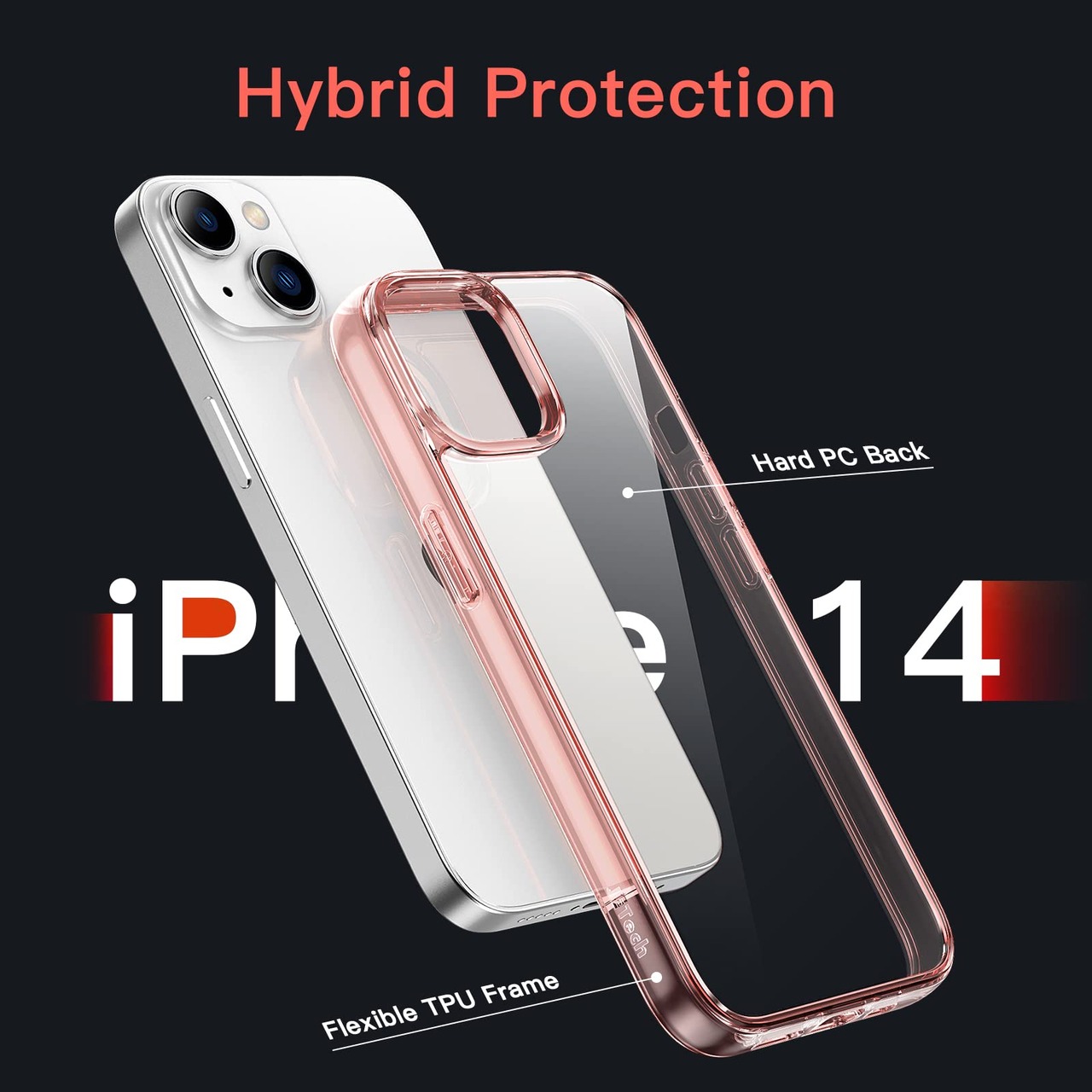 JETech iPhone 14 6.1インチ用 保護ケース 黄ばみなし 衝撃吸収 バンパーカバー 傷つけ防止 クリアバック (ローズゴールド)