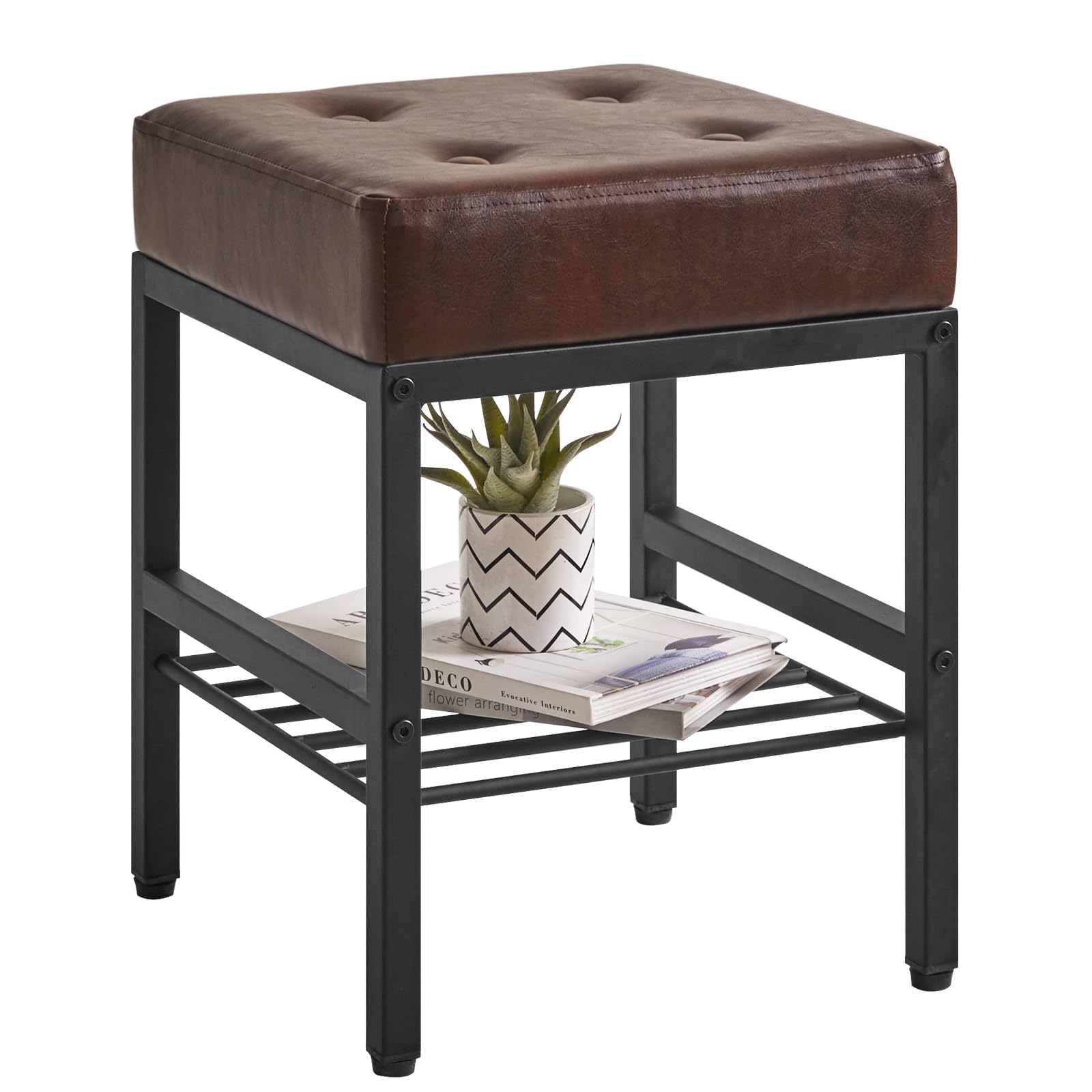 IBUYKE スツール おしゃれ 椅子 多機能収納スツール 運搬便利 ダイニングチェア 足置き 滑り止め 大容量収納 耐荷重180kg PUレーザ 小物収納 リビング/玄関/寝室適用 ブラウン LG-60Z