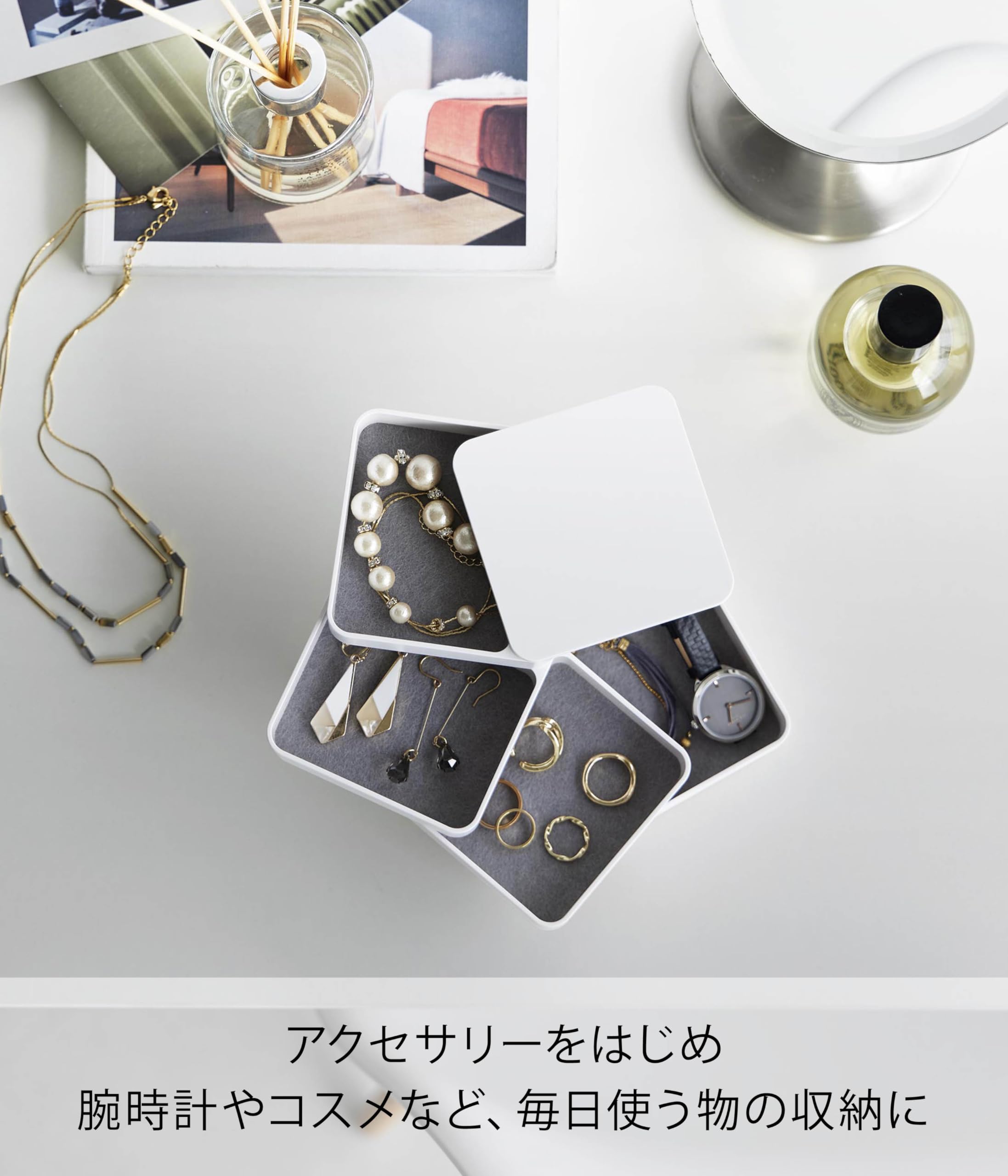 アクセサリーをはじめ、コスメや腕時計など毎日身に着ける小物の収納に最適です。