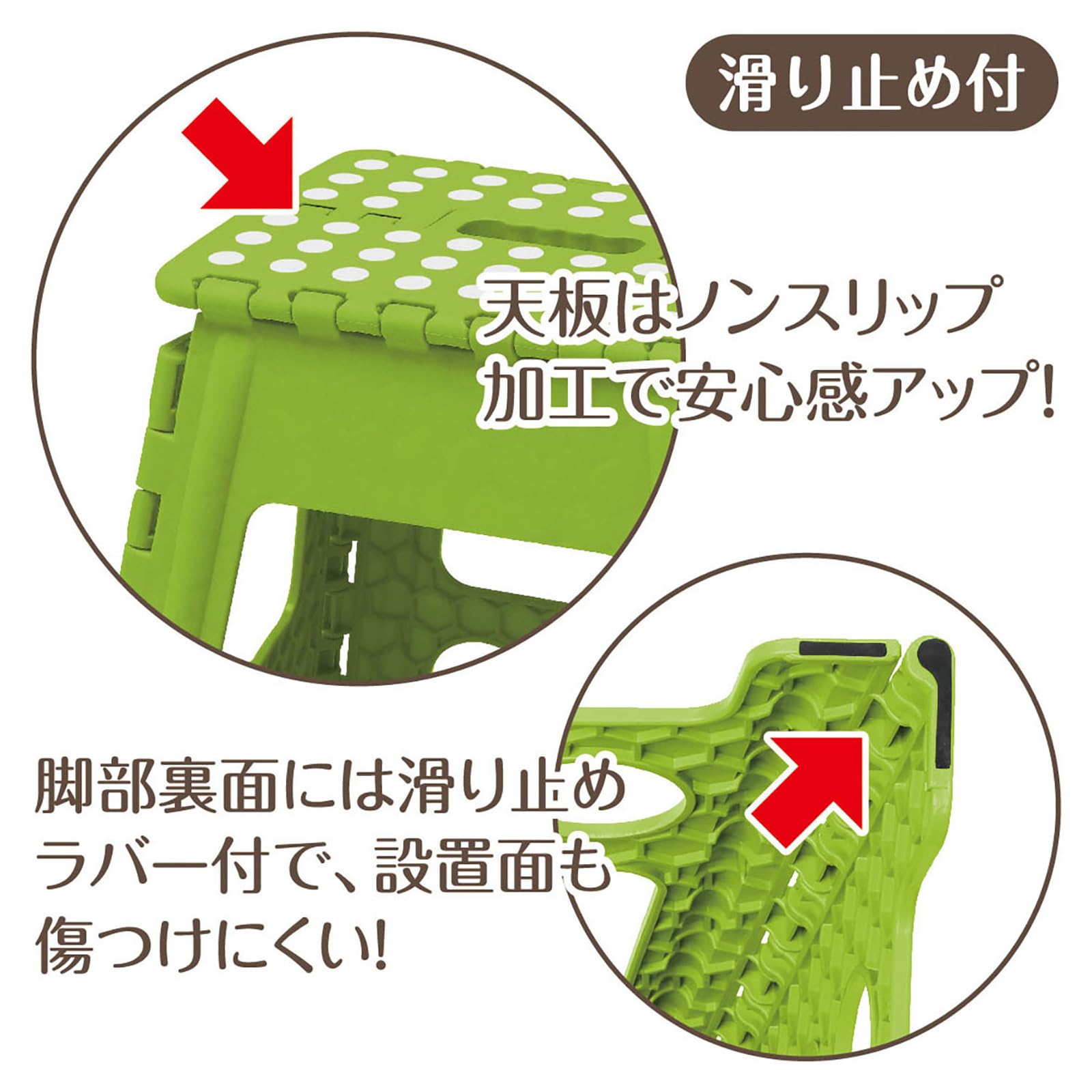 使いやすさとノンスリップ機能 踏み場に滑り止めゴムを均一に配置することで、足が滑りにくくなっています。 足部裏面には、滑り止めのラバー付きなので踏み台自体も滑りにくく、床などを保護してくれて、フローリングでも使用OKです。