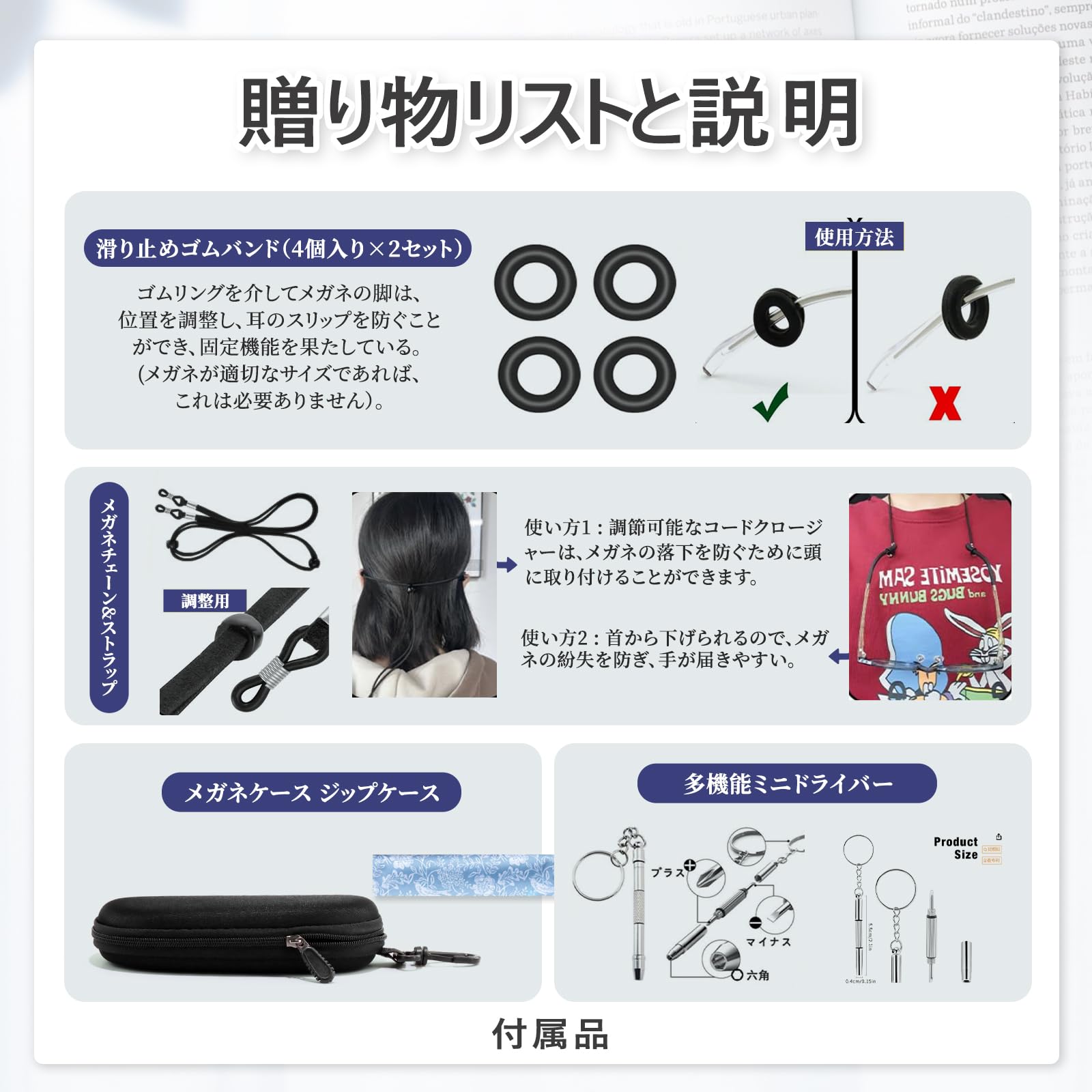ブルーライトを30%カット - ブルーライトカットがしっかりなされており、スマートフォンの白い画面が少し淡い黄色になっているので、眼への負担を軽減してくれです。レンズには歪みが全く無く、見える距離の範囲が広めとなっており、本やPCやスマートフォンの位置に顔を近付けなくても、楽に細かな文字が見えました。