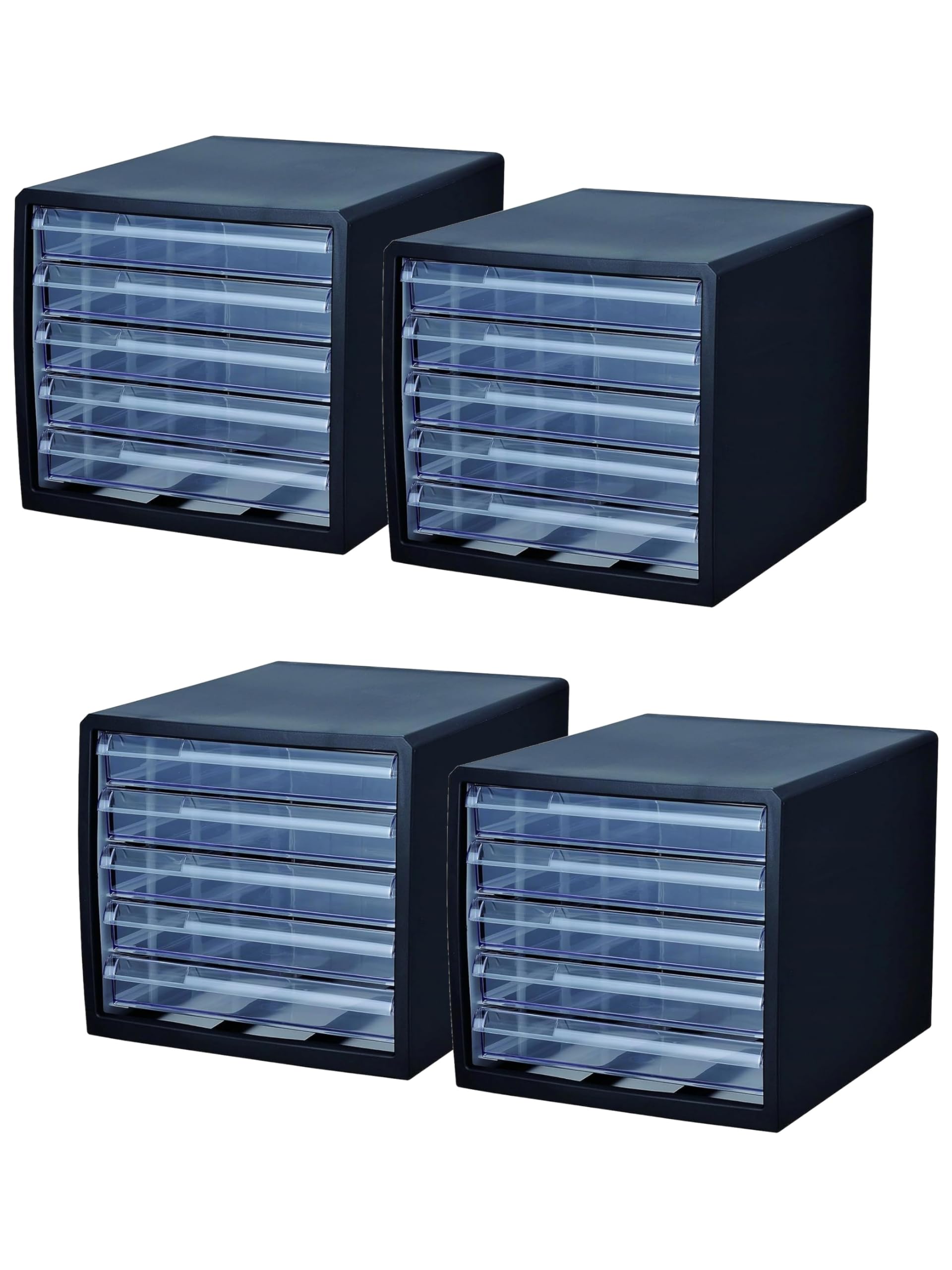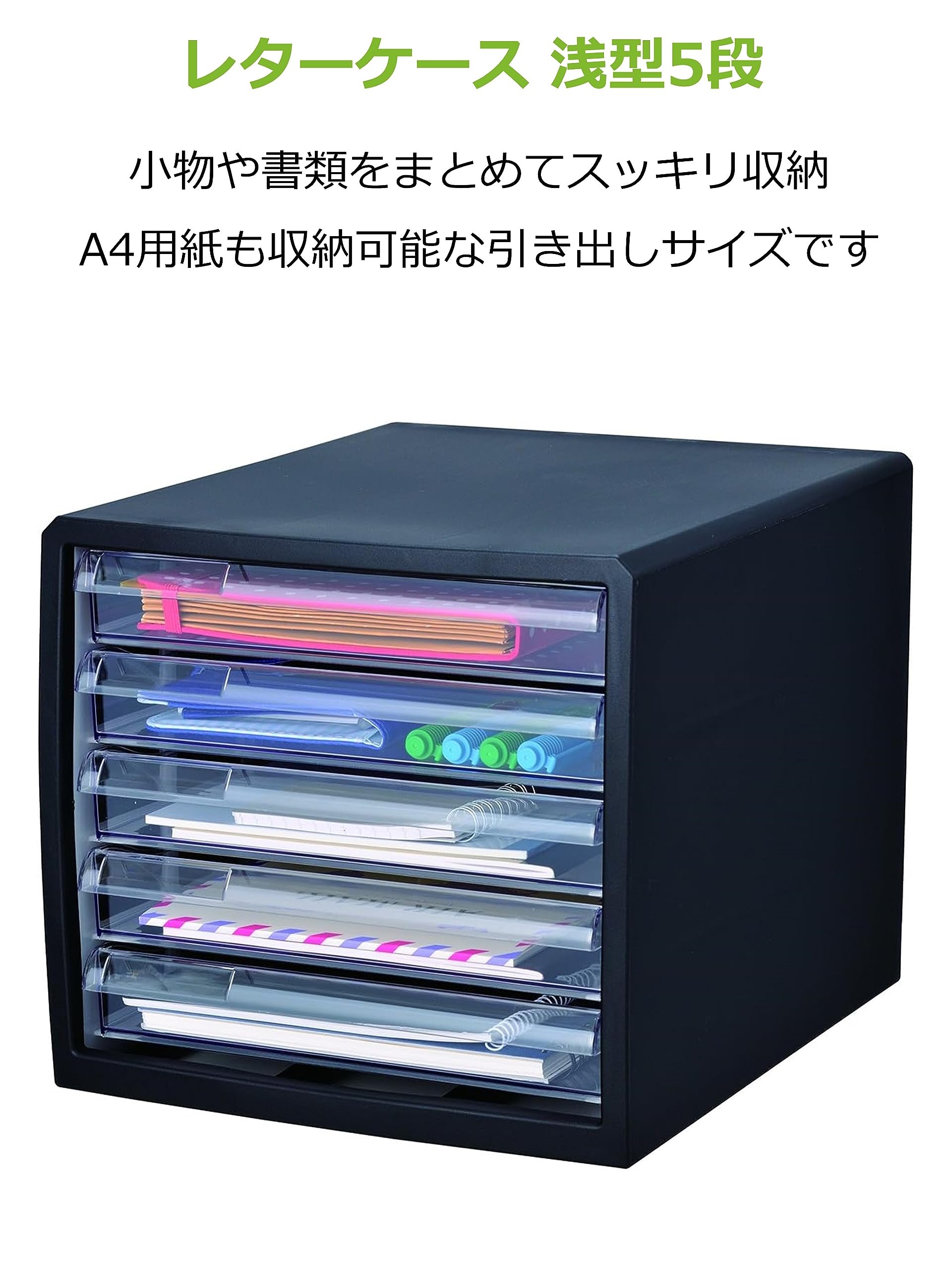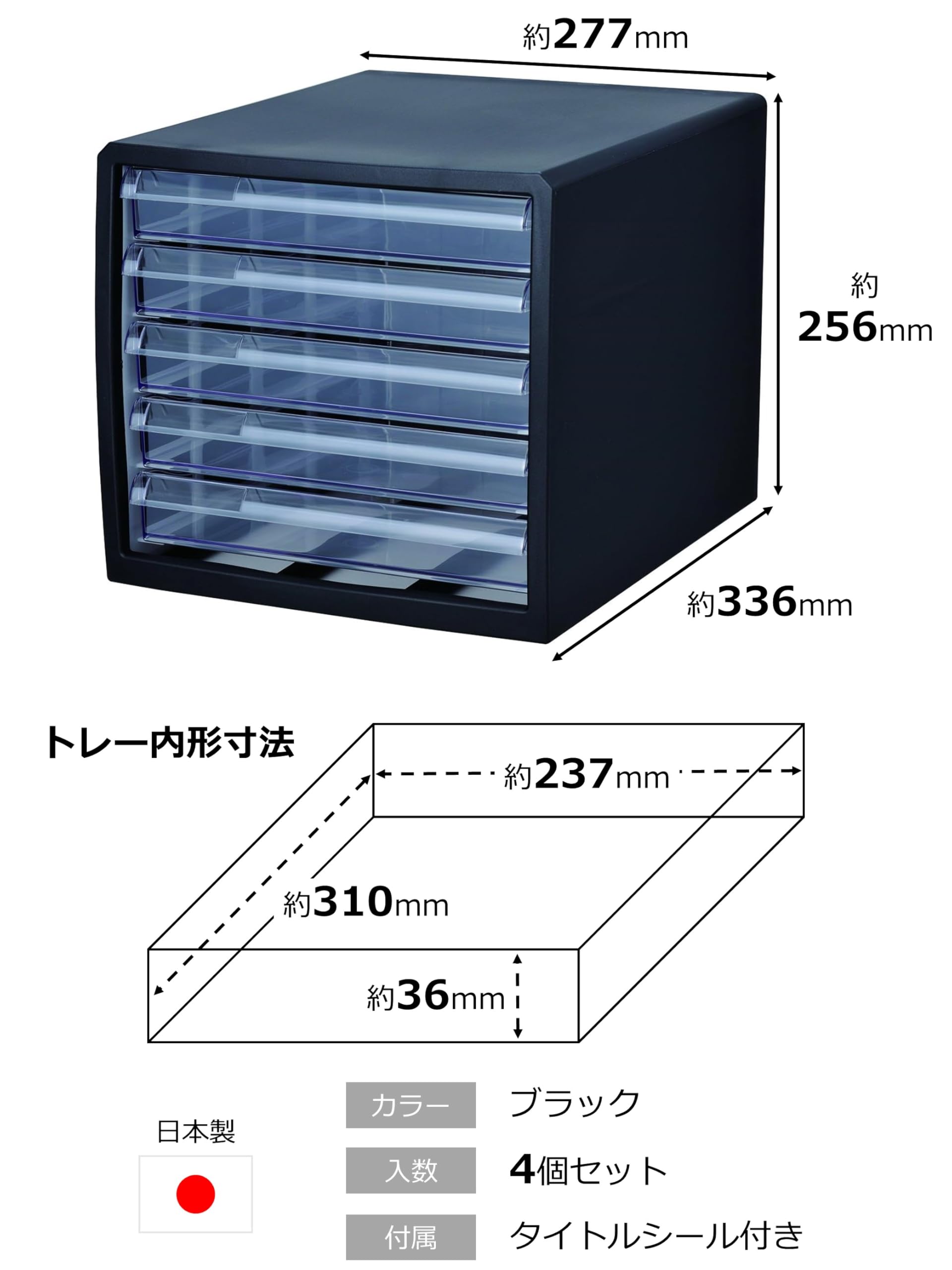 【Amazon.co.jp 限定】 ストリックスデザイン レターケース 浅型5段 4個セット ブラック 日本製 A4 引き出し 小物 収納 HS-917