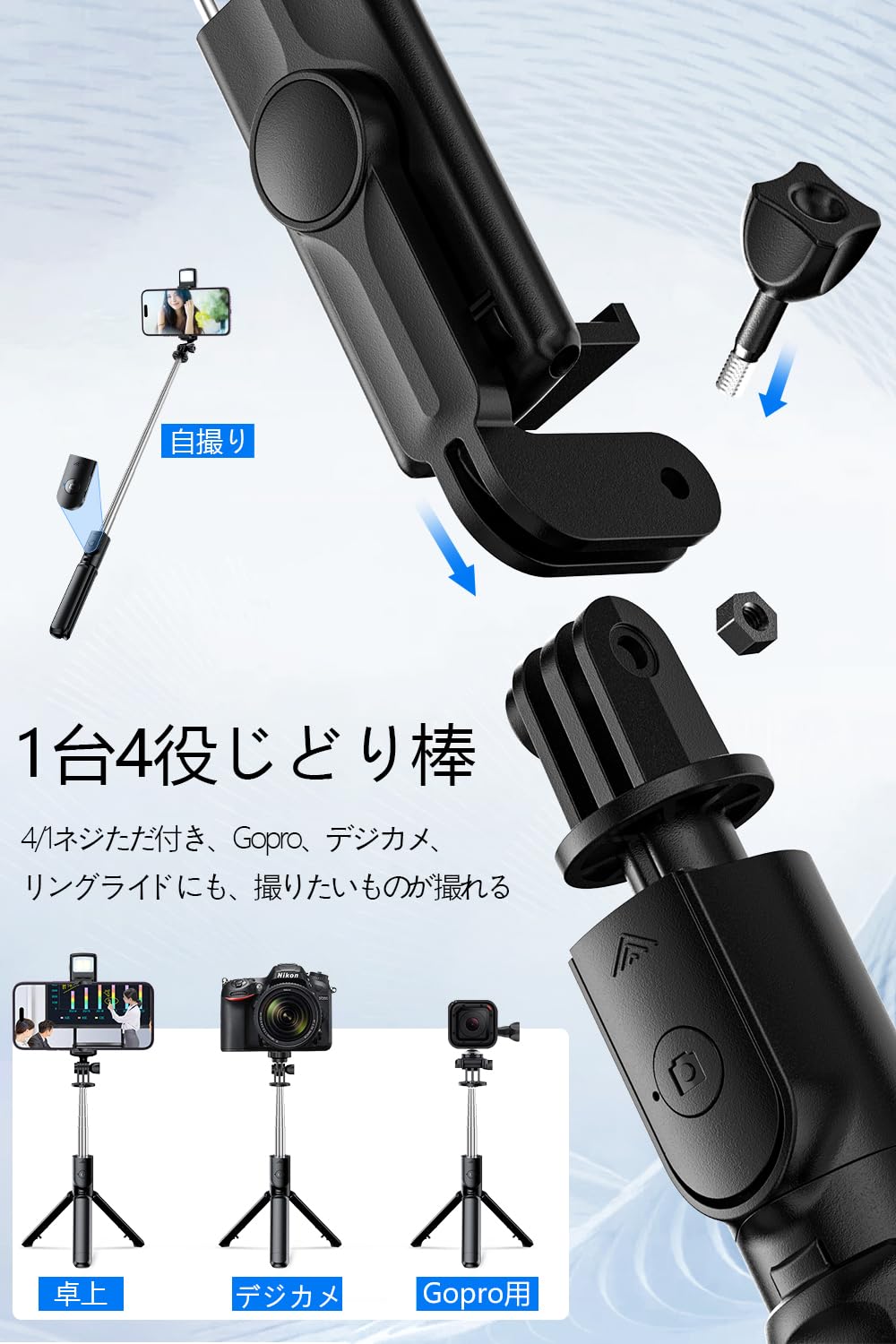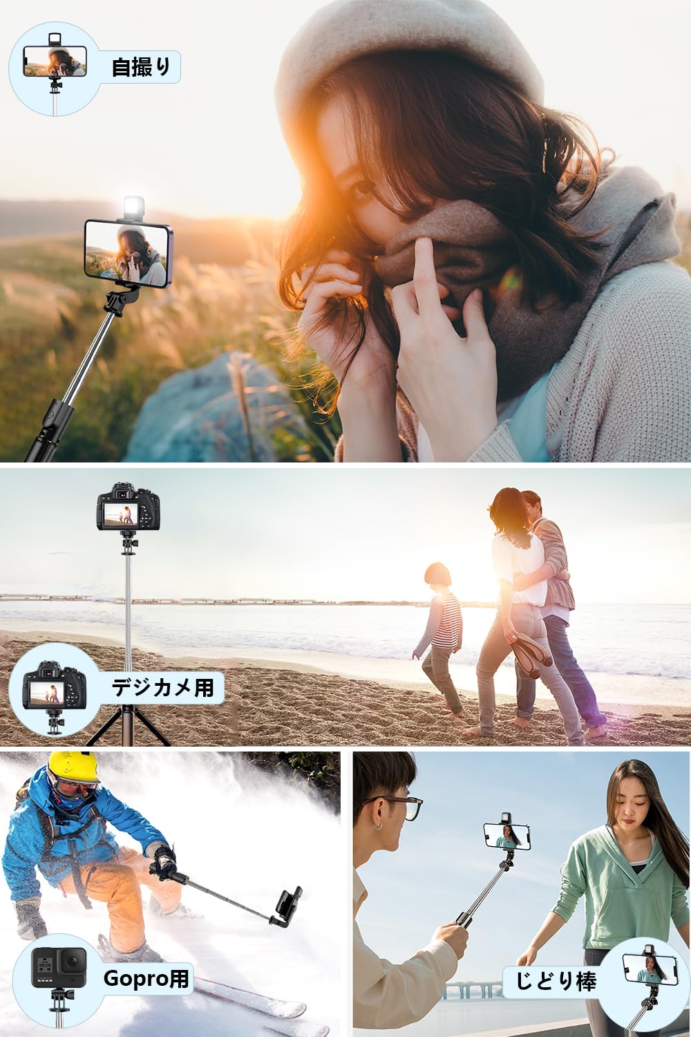 【Bluetooth スマホ リモコン付き!自撮り棒 おすすめの決定版】 自撮り棒 リモコン付き で、シャッターボタンはBluetooth接続により最大10mの遠隔操作が可能。 自撮り棒 シャッター リモコンはセルカ棒や 三脚スマホ との連携にも優れ、ライブ配信や集合写真も簡単操作。 スマホ自撮り棒 、 セルカ棒 三脚 としての両立機能を持ち、 スマホ三脚スタンド としてプロ級の撮影体験を提供。自撮り棒 おすすめモデルとして、自宅、旅行先、アウトドア問わず活躍。 自拍杆 や じどり棒 、 カメラ 三脚 コンパクト などを探している方にも最適です。