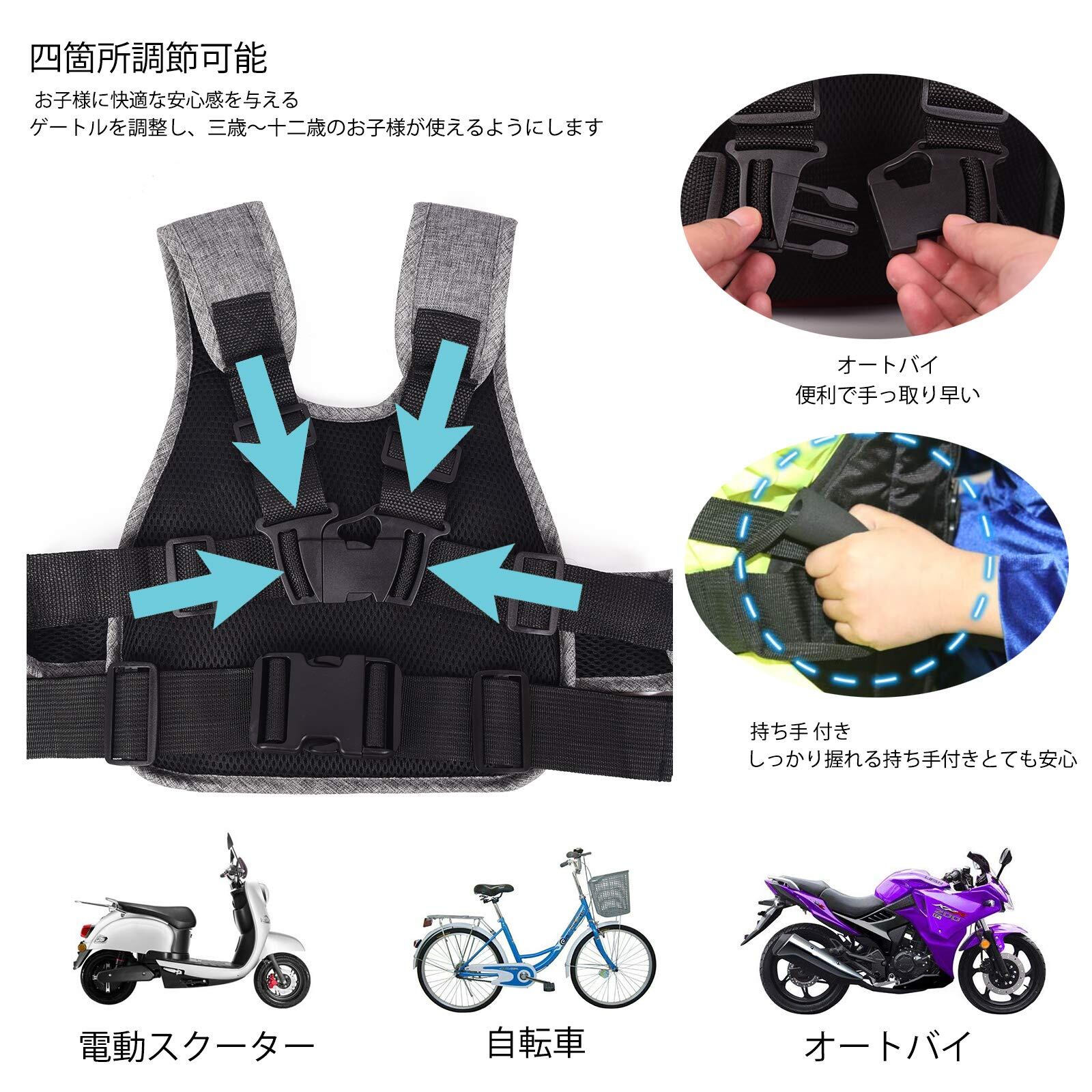【四箇所調節可能、しっかりと子どもを固定できる】両肩だけでもなく、腰も付けるリュックのデザイン、四箇所の力点で急加速またはブレーキもしっかりと子どもを固定できる。リュックタイプので、両腕の動きの範囲が大きくなり,バイクあまり乗り慣れていない子どもには良い適性がある。