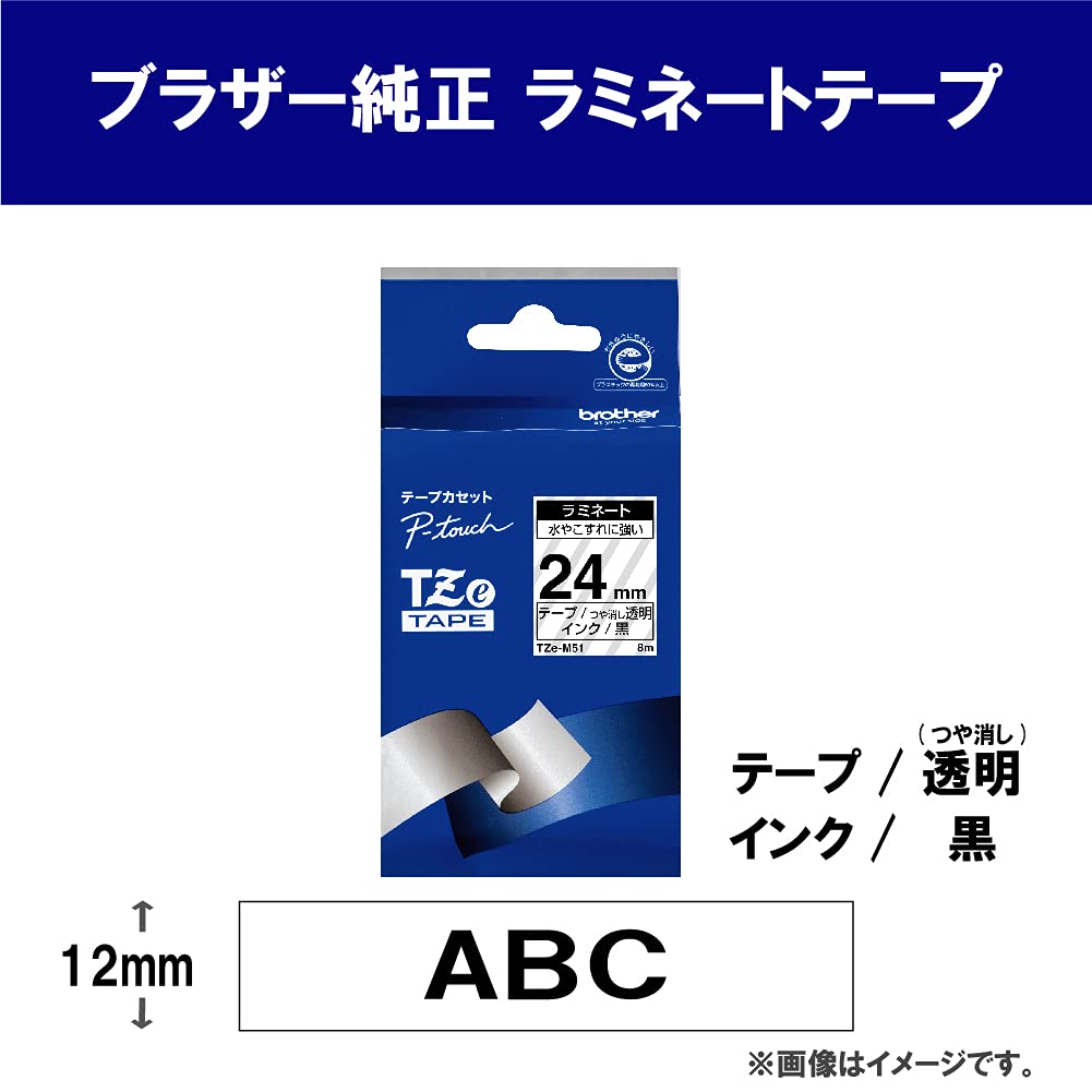 ブラザー工業 TZeテープ ラミネートつや消し TZe-M51 透明地(つや消し)/黒文字 24mm