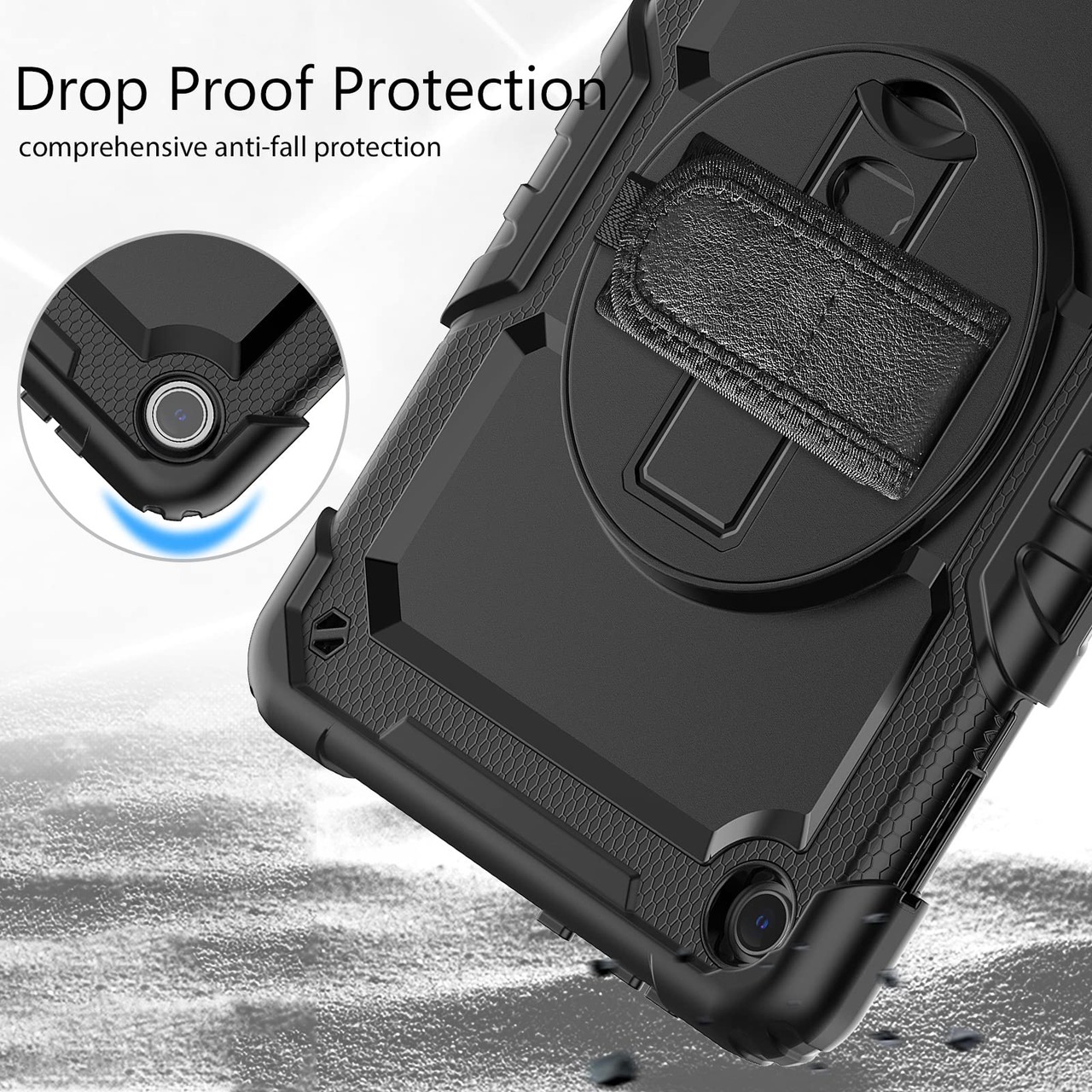 【素材構造】手触り感が良くのシリコン+PC素材の三重構造で本体をしっかり保護します。内蔵保護フィルム生活防水(軽い水しぶき、水滴など)強い衝撃、落下、スクリーンのダメージ。ケースが画面の縁まで回り込む設計のため、柔軟な外枠が衝撃を吸収します。角部分の保護力も強化しました。カメラの設計より3mm高いため、カメラに傷が付くのを防ぎます。大切なiPadをしっかりと保護します。