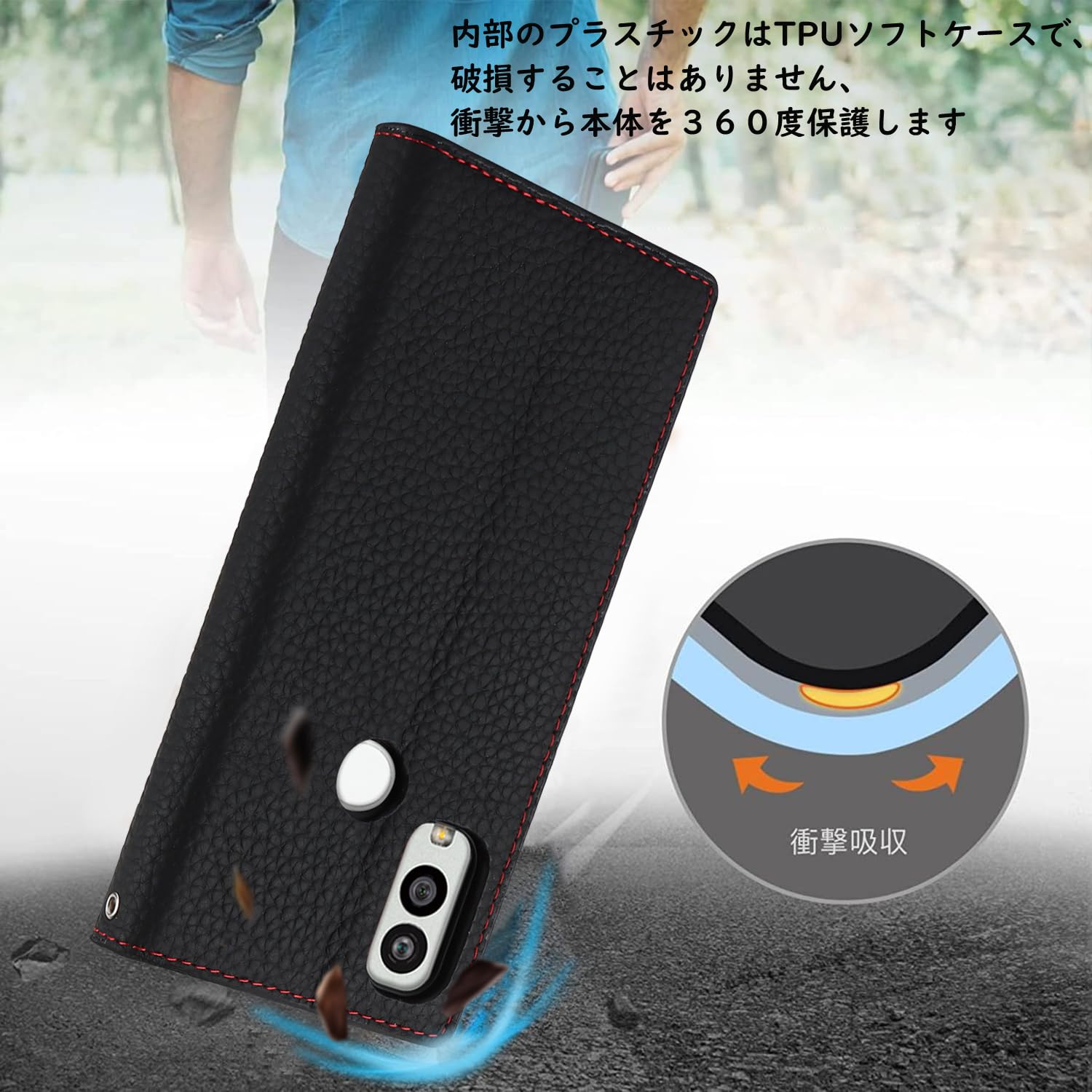 Havaya Android One S10 ケース Android One S9 ケース アンドロイド ワン S10 スマホケース 手帳型 京セラ KC-S304 本革 au ストラップ docomo 耐衝撃 S10-KC/S9-KC Digno SANGA edition カバー SoftBank カード収納 スタンド機能 レザー -ブラック