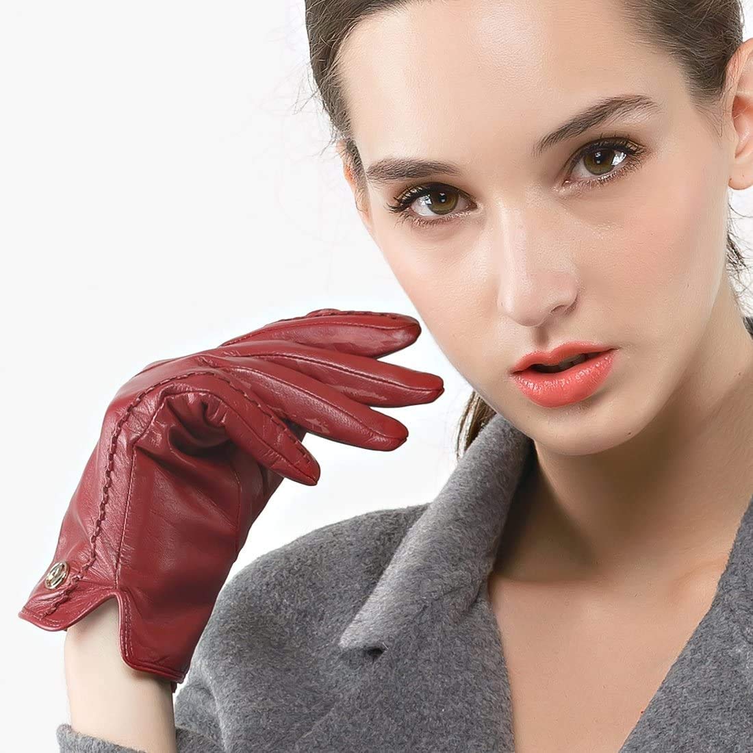 [Nappaglo] レディース 女性用 手袋 ショート レザー 冬 羊革 スマホ対応 手作り 通勤 運転 パーティー グローブ