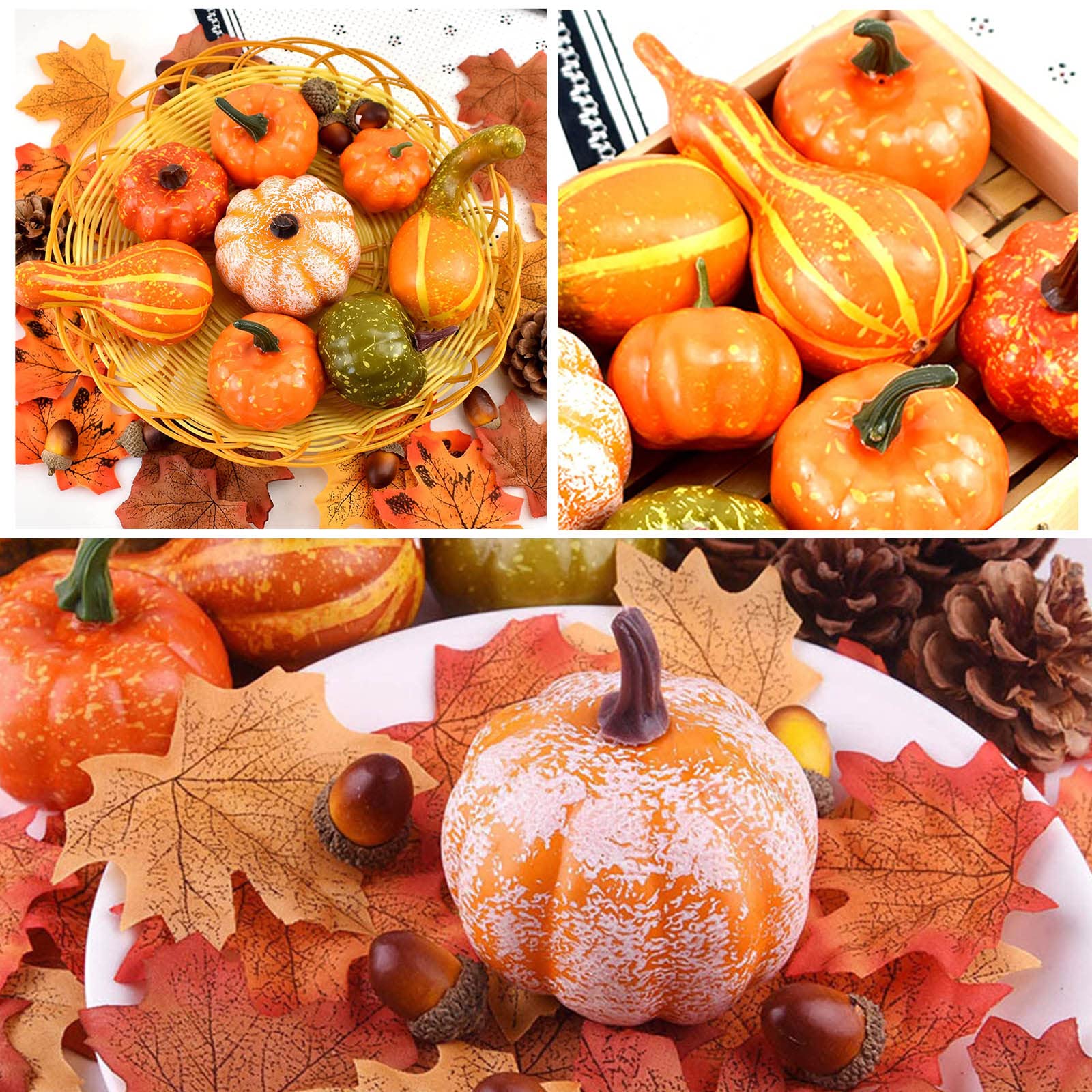 2.【高品質】この南瓜飾りセットは、プレミアム品質の素材で作られています。 すべての人工装飾はとても美しく、絶妙で、リアルで鮮やかです。