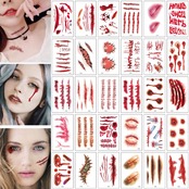 【特価セール】[YFFSFDC] タトゥーシール ハロウィン コスプレ 傷跡 縫い傷 蜘蛛 眼球 爪裂き 特殊メイク 防水 小道具 30枚セット