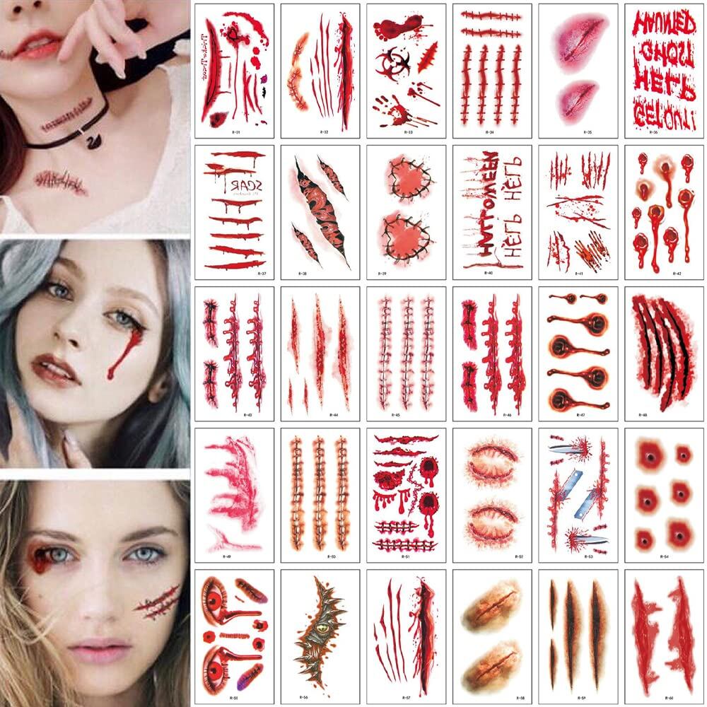 [YFFSFDC] タトゥーシール ハロウィン コスプレ 傷跡 縫い傷 蜘蛛 眼球 爪裂き 特殊メイク 防水 小道具 30枚セット
