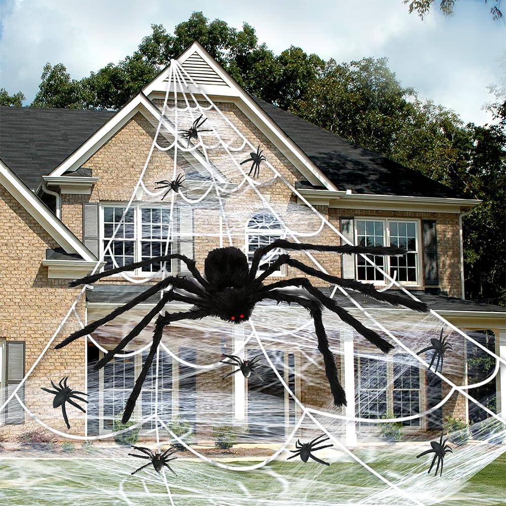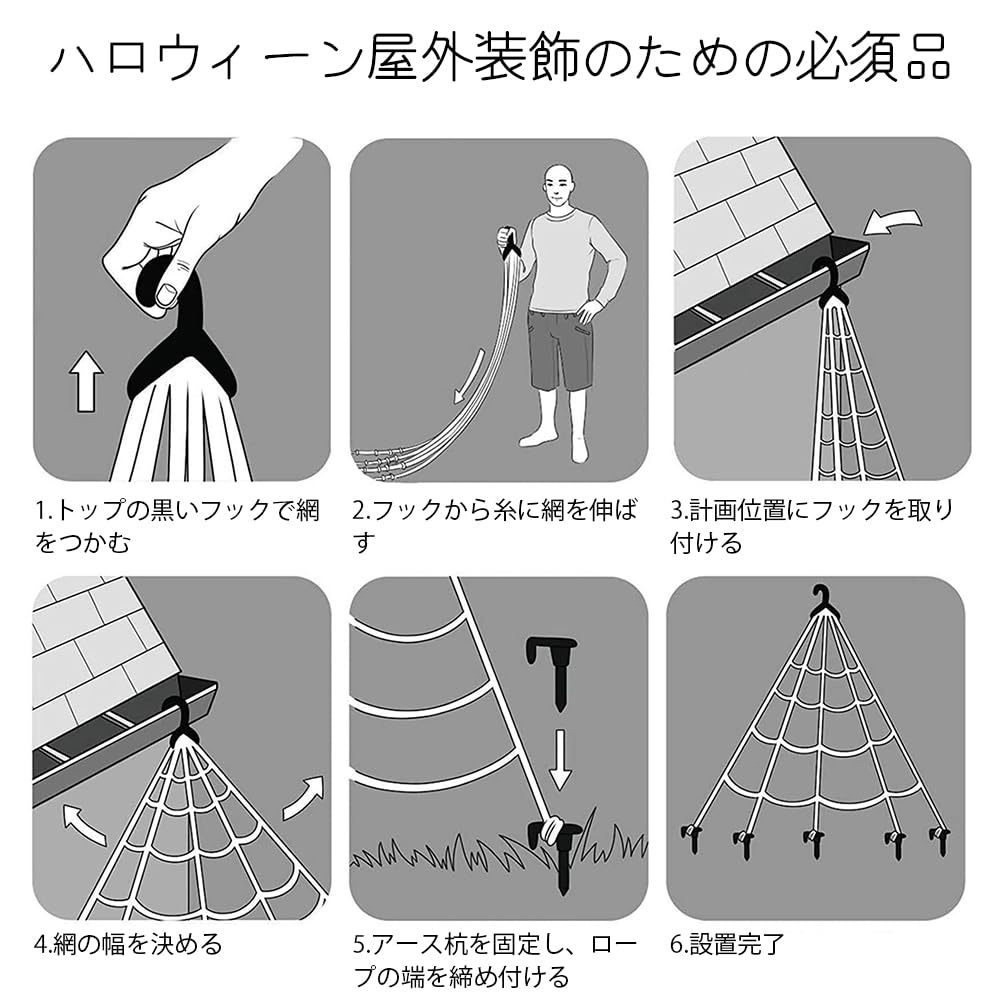 【サイズ】「三角形蜘蛛の巣:5 m長」「黒蜘蛛:125 cm」、必要な場所に好きなだけ置くことができます。