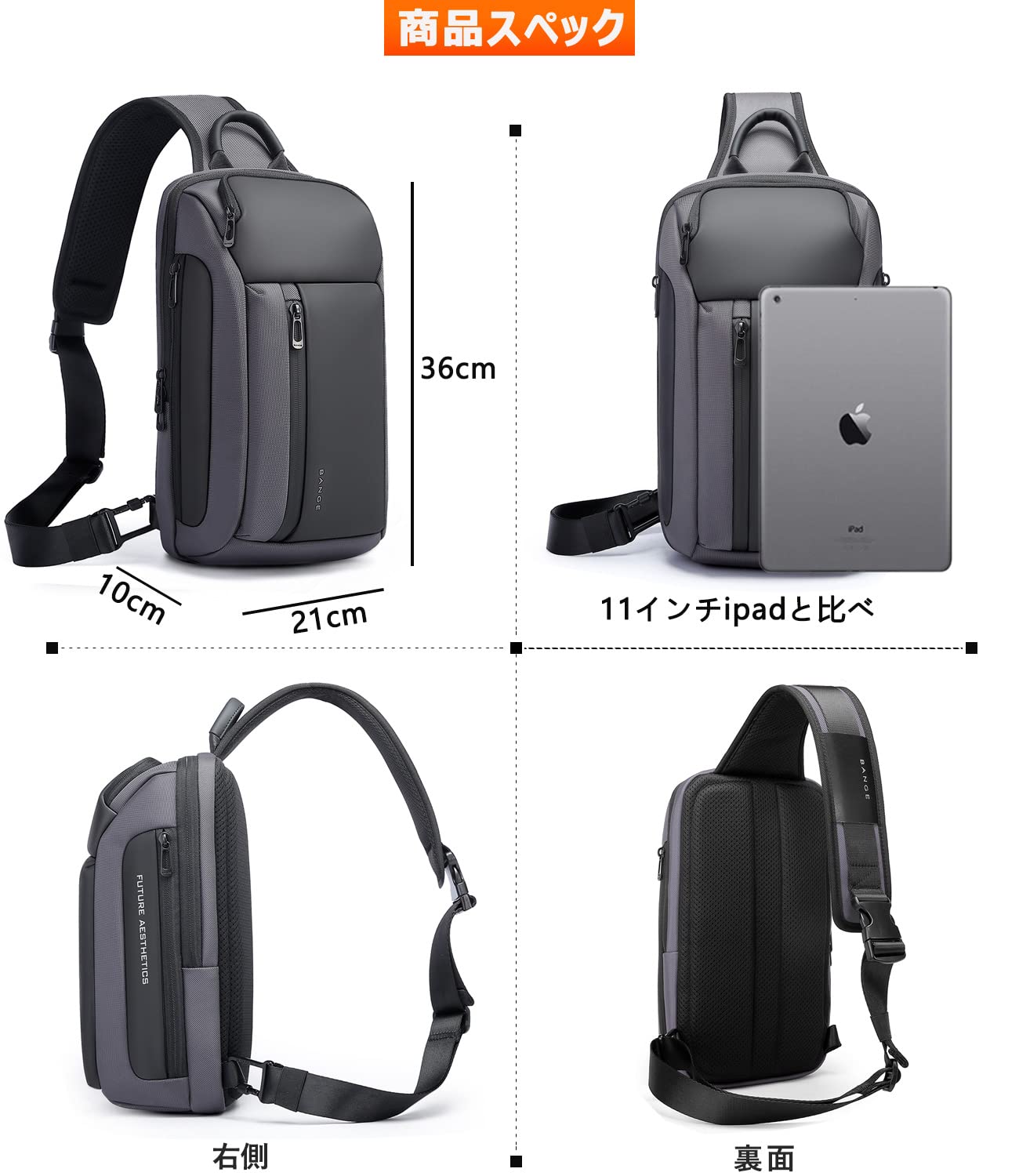 通気性に優れ素材:肌に触れる部分は吸湿発散性・通気性の良いメッシュ素材を使用し、フィット感・通気性に優れ、暑い季節から寒い季節までオールシーズンお使いいただけます。ワンショルダータイプでも極厚のパッド入りので、背中の負担を軽減し、長時間肩にかけていても疲れにくいです。