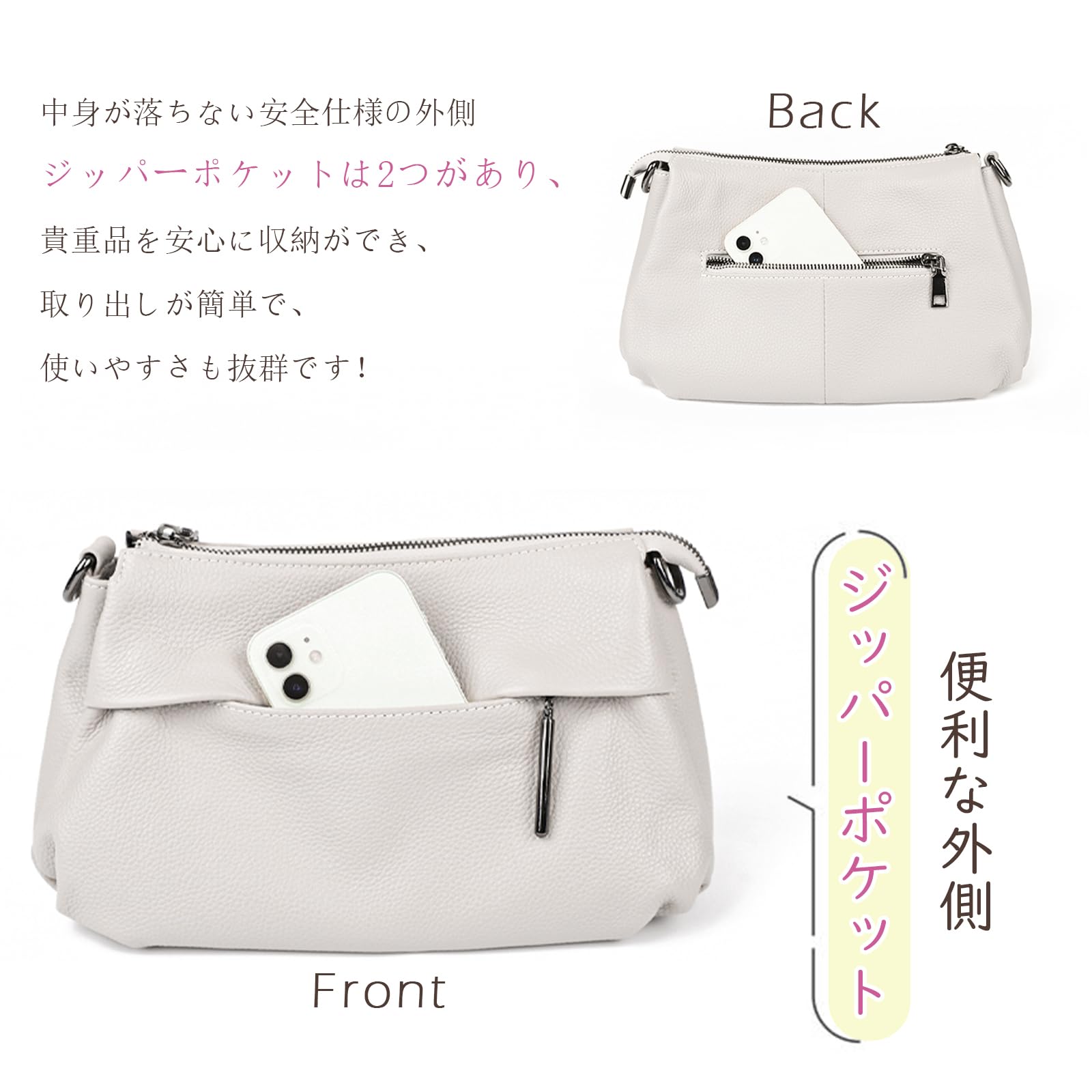 このショルダーバッグは、最高品質の本革で作られており、その柔軟性、耐久性、高級感に自信を持っています。毎日の使用に耐えうる品質です。本物の牛本革から製造され、使い込むほどに味わい深くなります。長寿命の製品で、長年にわたってあなたの信頼のお供になることでしょう。職人の手によって一つ一つ丁寧に作られており、クオリティには妥協しません。金属ジッパーは滑らかな開閉を保証し、長持ちするために高品質な素材で仕上げられています。細部にまでこだわった洗練されたデザインと職人技術が光ります。メインポケットが3層に独立して仕切られているため、整理整頓が簡単です。中央のポケットにはオープンポケットとジッパーポケットが装備されており、スマートフォン、鍵、小物など、小さなアイテムを簡単に収納できます。さらに、バッグの表と裏には追加のジッパーポケットが設けられ、貴重品を安全に収納でき、迅速にアクセスできます。生活がスムーズで効率的になることでしょう。 ブラック、ベージュ、アイアンブルー、パープル、ワインレッド、グレージュ、トープ、アイボリー、グレー、スモークブルー、幅広いファッションカラーを取り揃えています。あなたの個性やスタイルに合わせて、お好きなカラーを選択できます。ご覧のディスプレイや環境の光の色温度の違いにより、実物の色合いが多少異なる場合がございます。予めご了承ください。日常のアクセサリーとしても、ファッションステートメントとしても最適です。さらに、2つのショルダーベルトを付属しており、長いベルトは60〜120cmの幅広い範囲で調節可能で、ショルダーバッグや斜め掛けバッグとして使用でき、短いベルトは長さ約50cmで、ハンドバッグやミニトートバッグや肩がけバッグとして便利です。一つのバッグで、さまざまなスタイリングオプションが可能です。サイズもちょうど良く、28*10*19cmのコンパクトなデザインで、毎日の使用に最適です。バッグ本体がわずか軽量な400g程度の重さで、持ち運びが非常に軽快で快適です。一日中持ち歩いても疲れにくく、旅行や通勤時にも手放せない相棒となることでしょう。このショルダーバッグは、日常のあらゆるシーンで洗練されたスタイルと機能性を提供します。どんな状況でも、あなたの信頼のお供として活躍し、ファッションと実用性を組み合わせています。