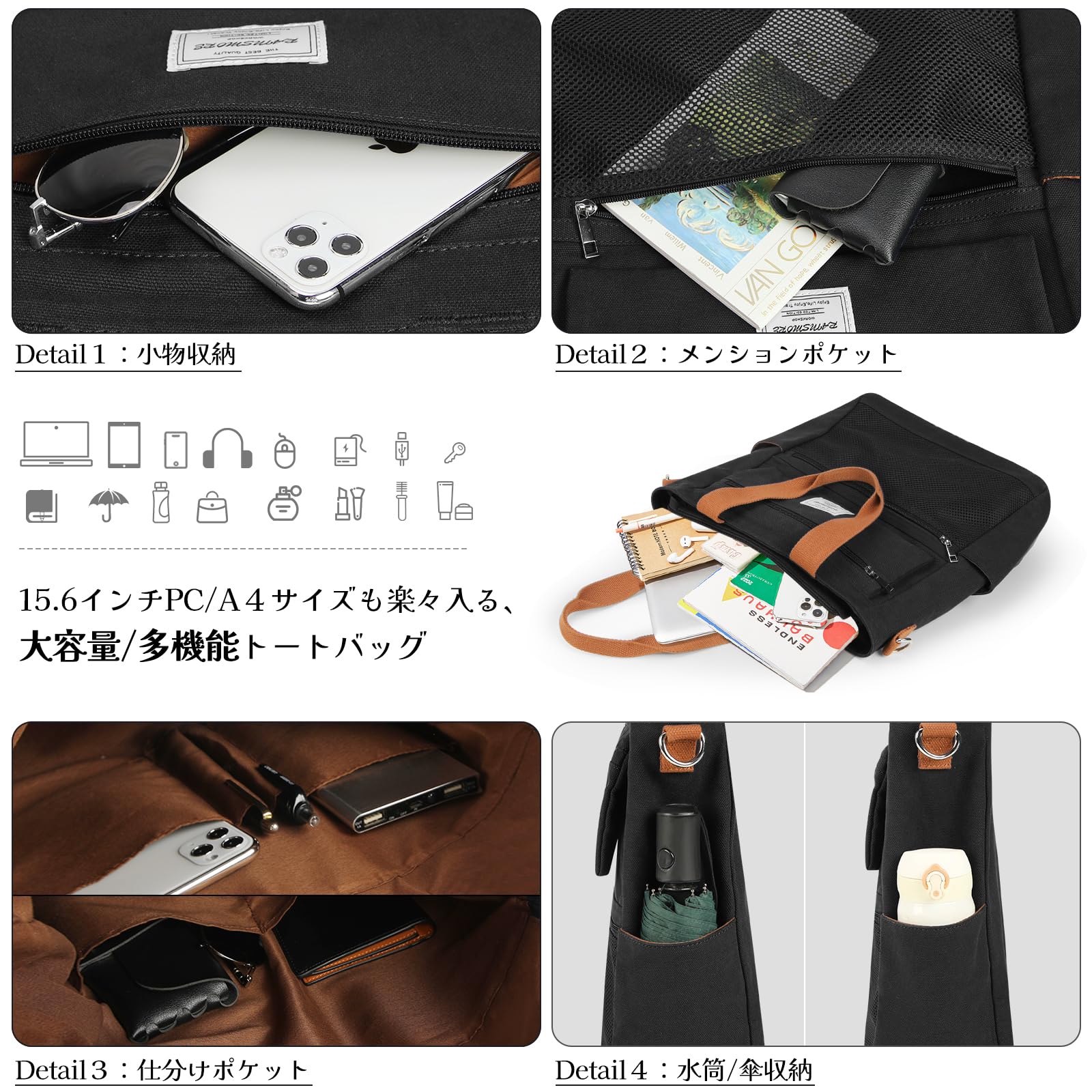 [RAINSMORE] トートバッグ レディース メンズ 大容量 キャンバス 男女兼用 15.6インチ 撥水加工 3色 トートバッグ a4 帆布 ショルダーバッグ ファスナー付き 肩掛け 斜め掛け