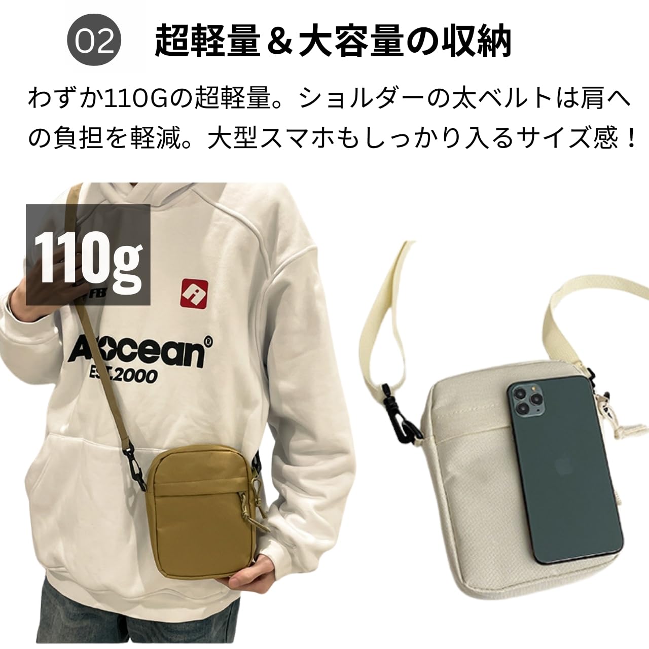 【軽量&コンパクト設計】たった110gの超軽量で、ストレスフリーな快適な使い心地を実現。ベルトも長時間の使用でも太ベルトで肩への負担を減らします。ミニマムなデザインと仕様のハンズフリーバッグです。