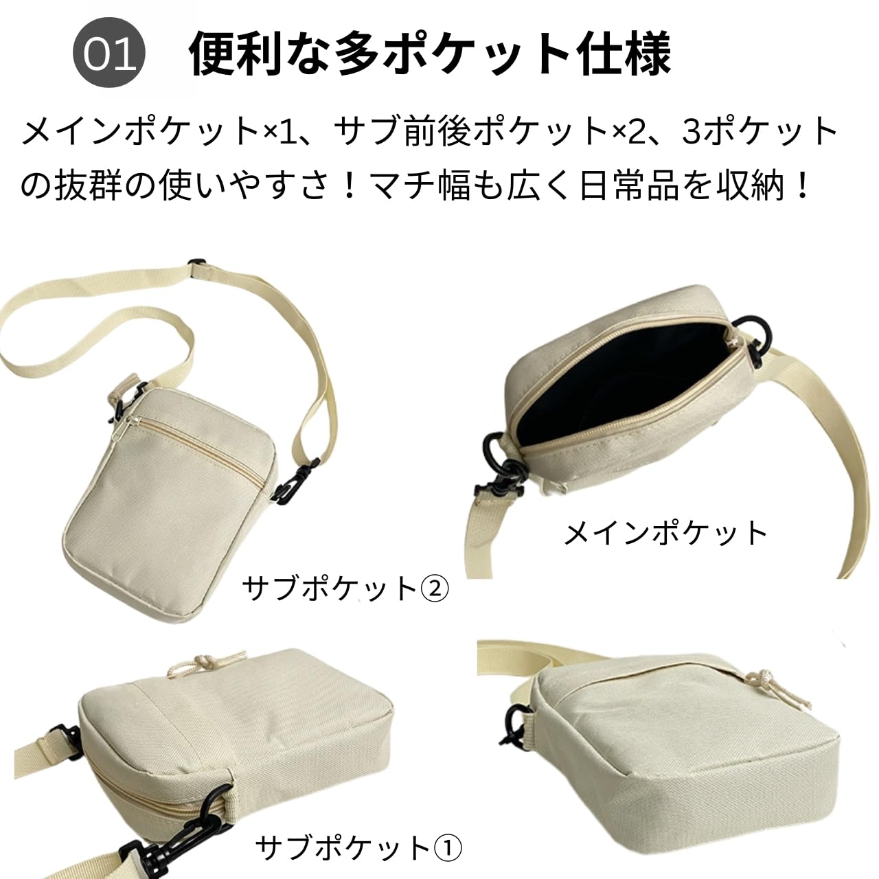 【スマート収納】メインポケット×1、サブ前後ポケット×2。3ポケットの抜群の収納力です。メインポケットには内ポケットが装備。マチ幅もあるのでスマホやタブレット、長財布、手帳、鍵などの日常品必需品をスッキリと収めるのに最適。ジップは使いやすさを考慮してタブ紐がついています。ショルダーの取り外しもできるのでバッグインポーチとしても使えます。