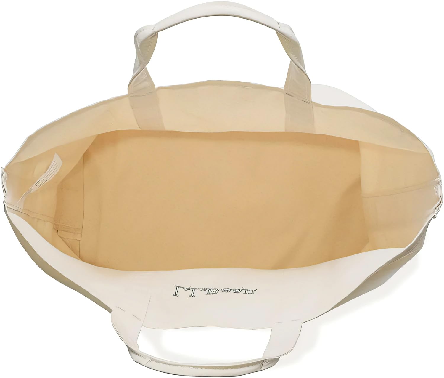 【商品仕様】 当社のロゴ入りのグローサリー・バッグ、ロゴの色はグリーン 薄手のキャンバスは、折りたためるソフトな素材 Natural以外のカラーは裏に透明のポリウレタン・コーティング。