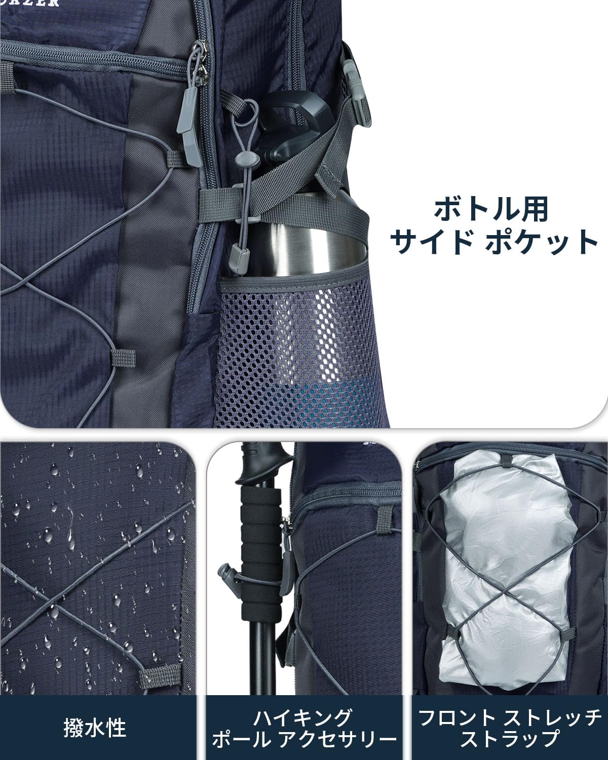 防水リュック・耐摩耗性: MOKZERハイキングバックパックは高品質のリップストップナイロン生地で作られ、耐水性、耐摩耗性、通気性、速乾性で快適です。登山リュックサック本体の生地の表面に、防水コーティングを施して、小雨の中ではアイテムが濡れずれないようになっています。外側には伸縮性シュリンクコードが付いており、持ち運びの際の揺れを最小限に抑えるよう調節できる。トレッキングやキャンプだけでなく、野外フェス、フィッシング、ウィンタースポーツなど様々なアウトドアシーンにも大活躍してくれる