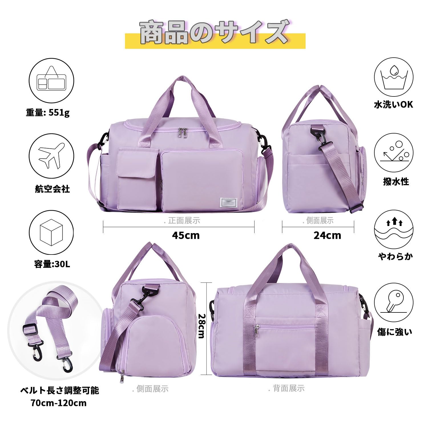 【数量限定】【GSG】ボストンバッグ 旅行バッグ 1泊 修学旅行 メンズ レディース (乾湿分離ポケット大き目/37Lでも大容量/軽量/4way)スポーツ ジムバック 防災 ゴルフバッグ キャリーオンバッグ 機内持ち込み ボストンバック 2泊 3泊 紫 パープル 21001 | allureshop