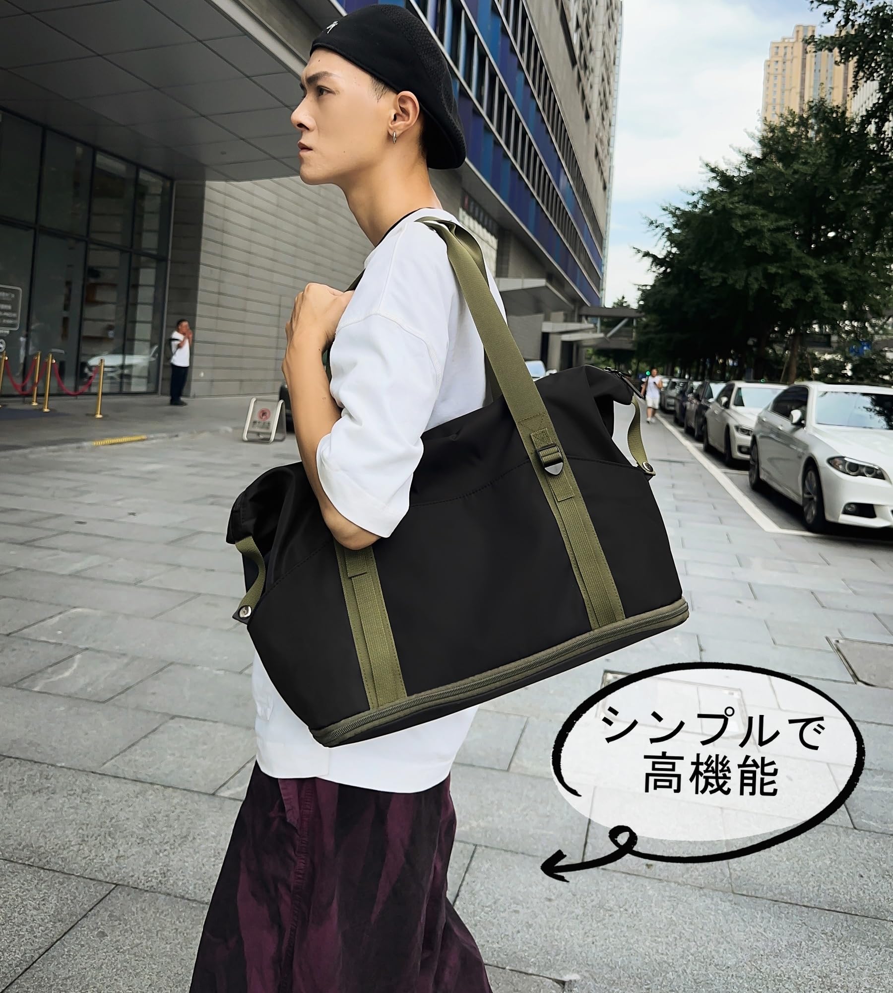 ボストンバッグ トートバッグ トラベルバッグ トレーニング 無地 コンパクト 撥水 かばん ゴルフ 大容量 スポーツ 軽量 収納力 シンプル 修学旅行 帰省 斜め掛け ナイロン ブラック 黒