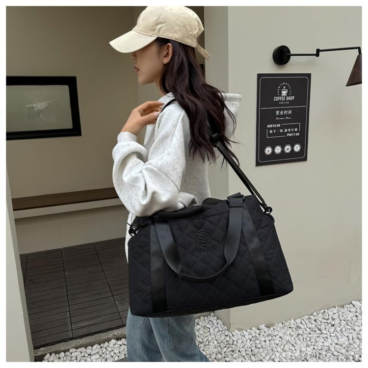 旅行バッグ トラベルバッグ ボストンバッグ ショルダー キルティング キルト 大容量 軽量 撥水 乾湿分離 出張 機内持ち込み 1泊2日 (ブラック)
