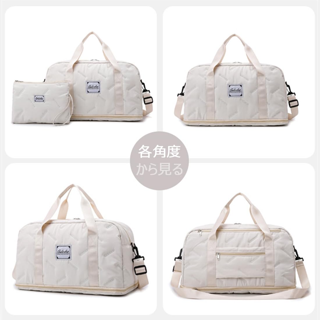 【大容量ボストンバッグ】合計6つの収納ポケットがあって整理整頓しやすくなります。さらにサブバッグがつており超便利です。乾湿分離ポケットがあり濡れたタオルや洗面用具などを入れてもオッケーです。水泳や海水浴、温泉などに持っていくバッグとしてもおすすめ。