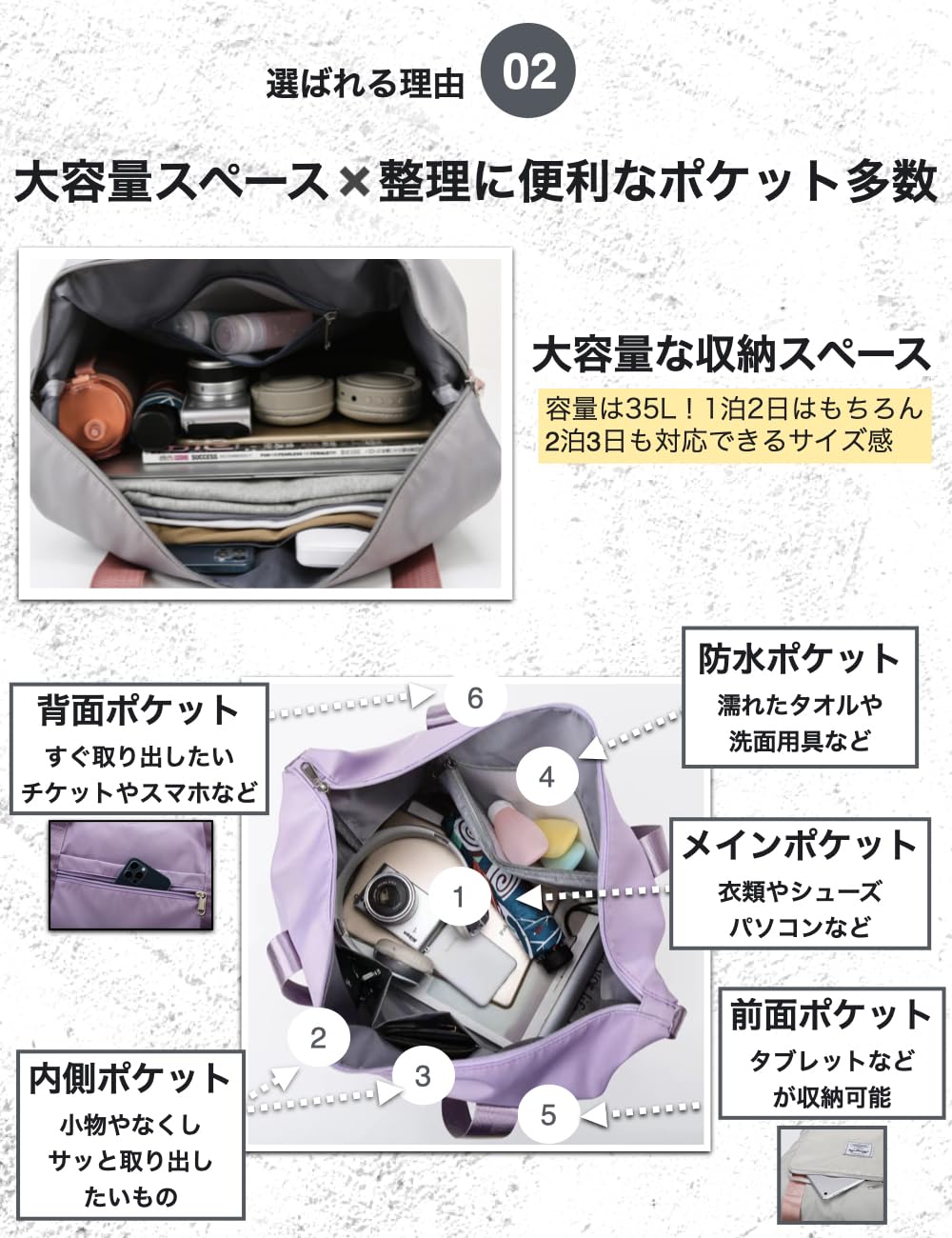 【シーンを選ばない万能3WAYバッグ!】 手持ち、肩掛け、キャリーオンと、その日の気分やシーンに合わせて使い分け自由。小学生の修学旅行のバッグや出張用バッグ、さらにはマザーズバッグとしてもおすすめ。ジムやヨガ、プール、旅行のサブバッグとしても◎。これ一つで、あなたのライフスタイルをもっと快適に!