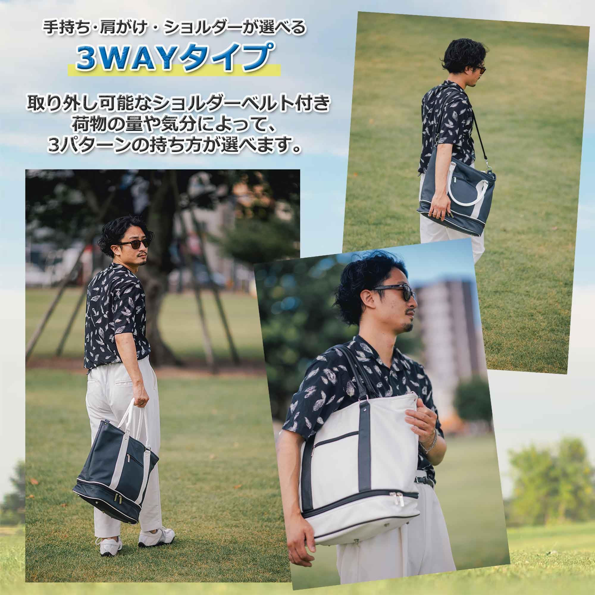 【特価セール】[S.T.Golf] ゴルフ トートバッグ メンズ 高級PUレザー 大容量 シューズ収納可 3WAY 型押しロゴ ショルダーストラップ付属 防水 (ネイビー×ブラック) | allureshop