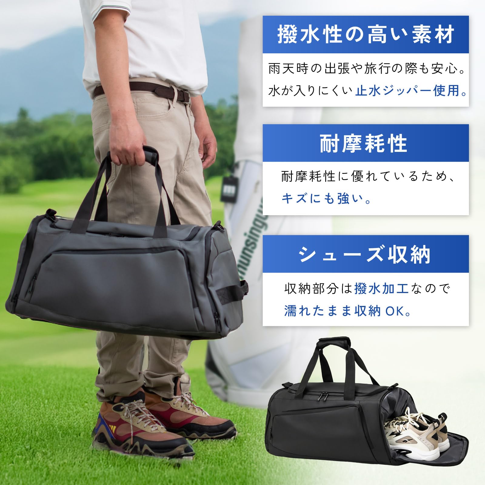 [KURASUUMO]クラスーモ ボストンバッグ 35L 大容量 【シューズポケット付 防水 撥水】 ゴルフ ジムバッグ スポーツバッグ【グレー】