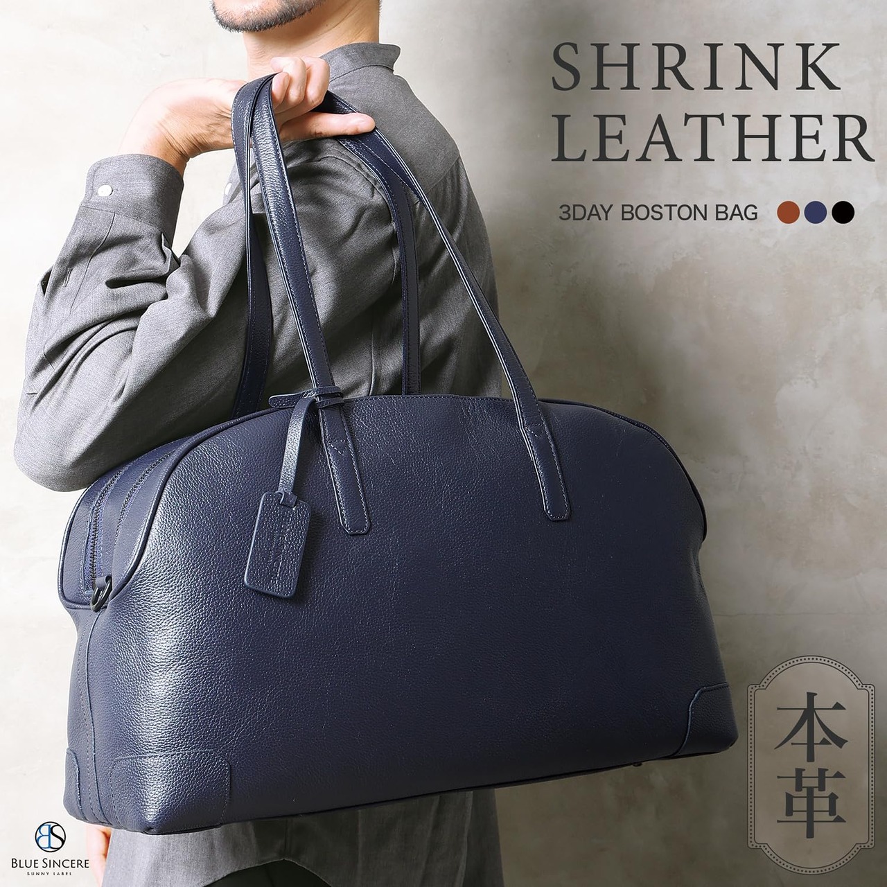 【在庫セール】[BLUE SINCERE] ボストンバッグ メンズ 本革 大容量 2WAY 機内持ち込み 2泊3日 旅行 出張 軽量 撥水 革 レザー トラベル 鞄 ゴルフ バック / BTB1 (ダークネイビー)