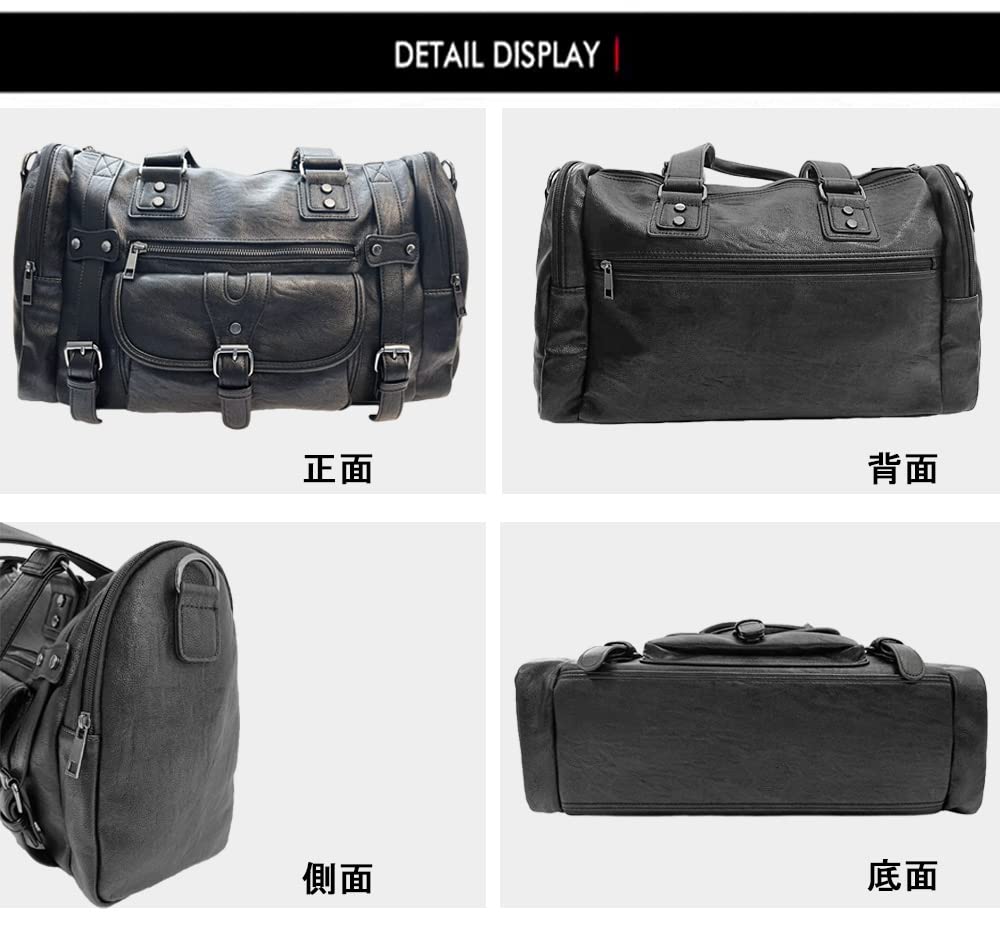 [LEOLEO] ボストンバッグ PUレザー トートバッグメンズ ショルダーバッグ 大容量 多機能 肩掛け 斜めがけ 手提げ ハンドバッグ おしゃれ A4対応 カジュアル 旅行 出張 ブラック 男女兼用