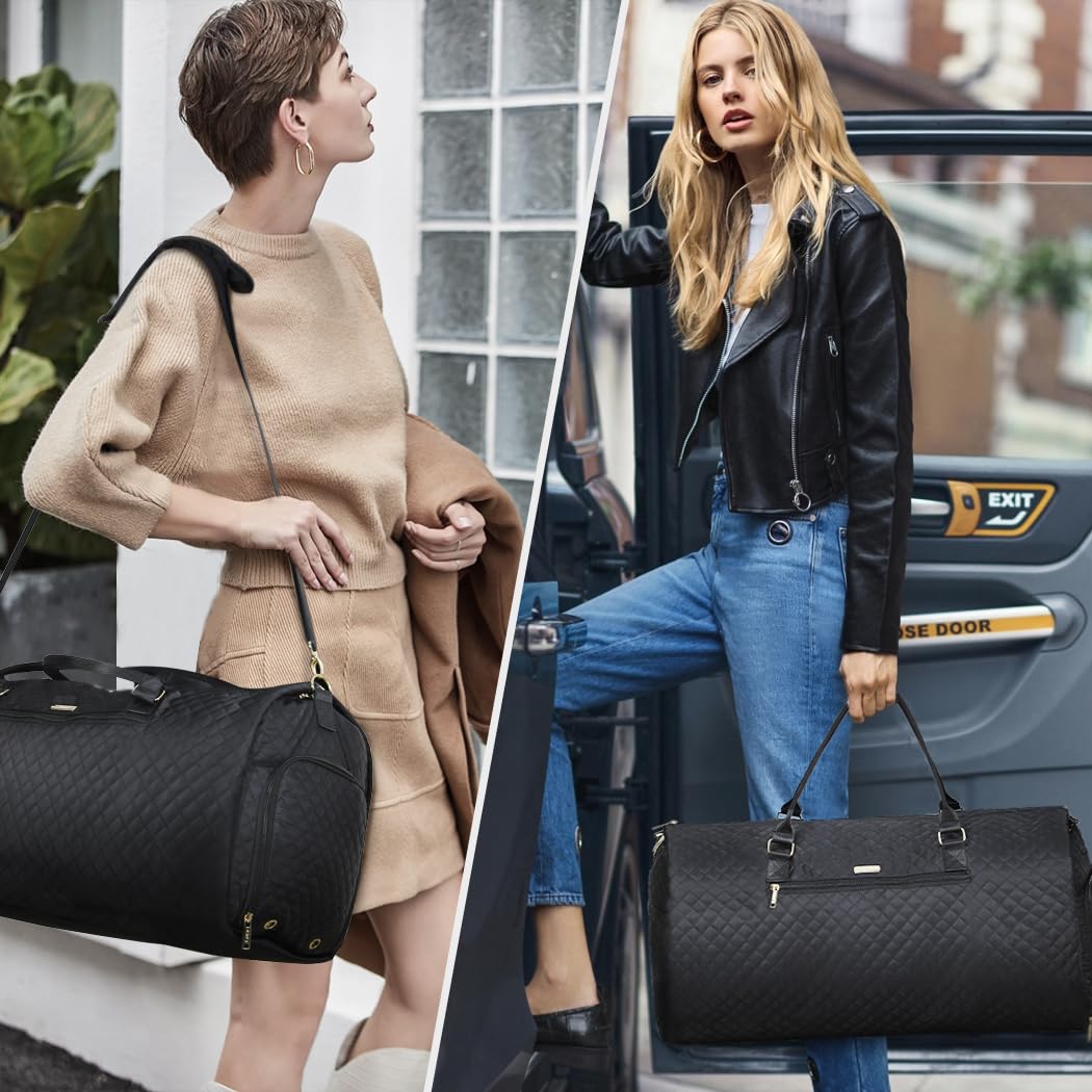 【大容量の収納力】: ガーメントバッグと女性用ダッフルバッグの特徴を組み合わせたファンシーなデザインで、吊り下げ式衣類(スーツ、スカート、イブニングドレス)を入れる。 独立したシューズバッグは、汚れた靴と清潔な衣類を完全に分けて収納できます。様々な内ポケット、洗面用具、化粧品、電子機器などを入れる。