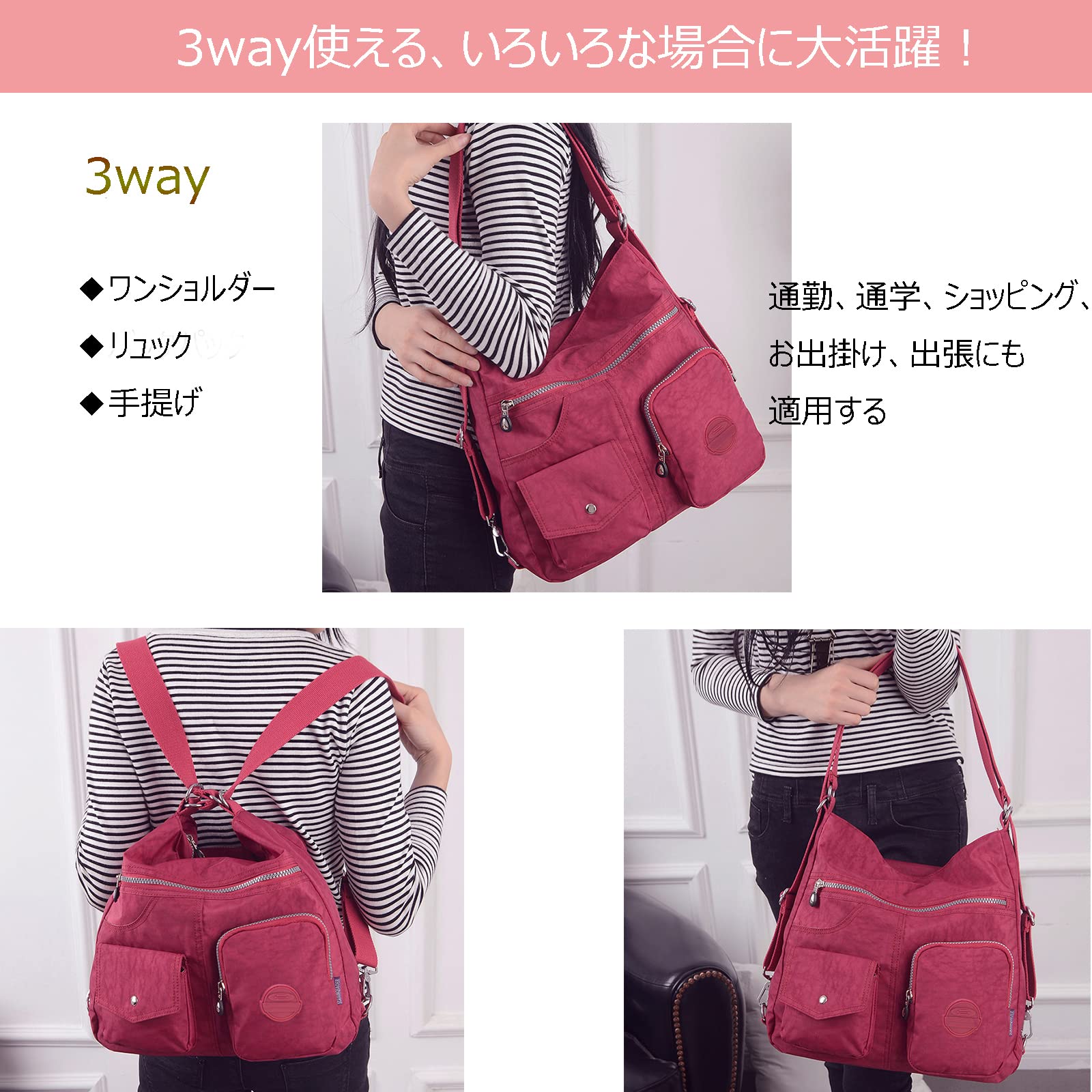 [Blostirno] ショルダーバッグ レディース リュック 大容量 ハンドバッグ ナイロン 2way 軽量 防水