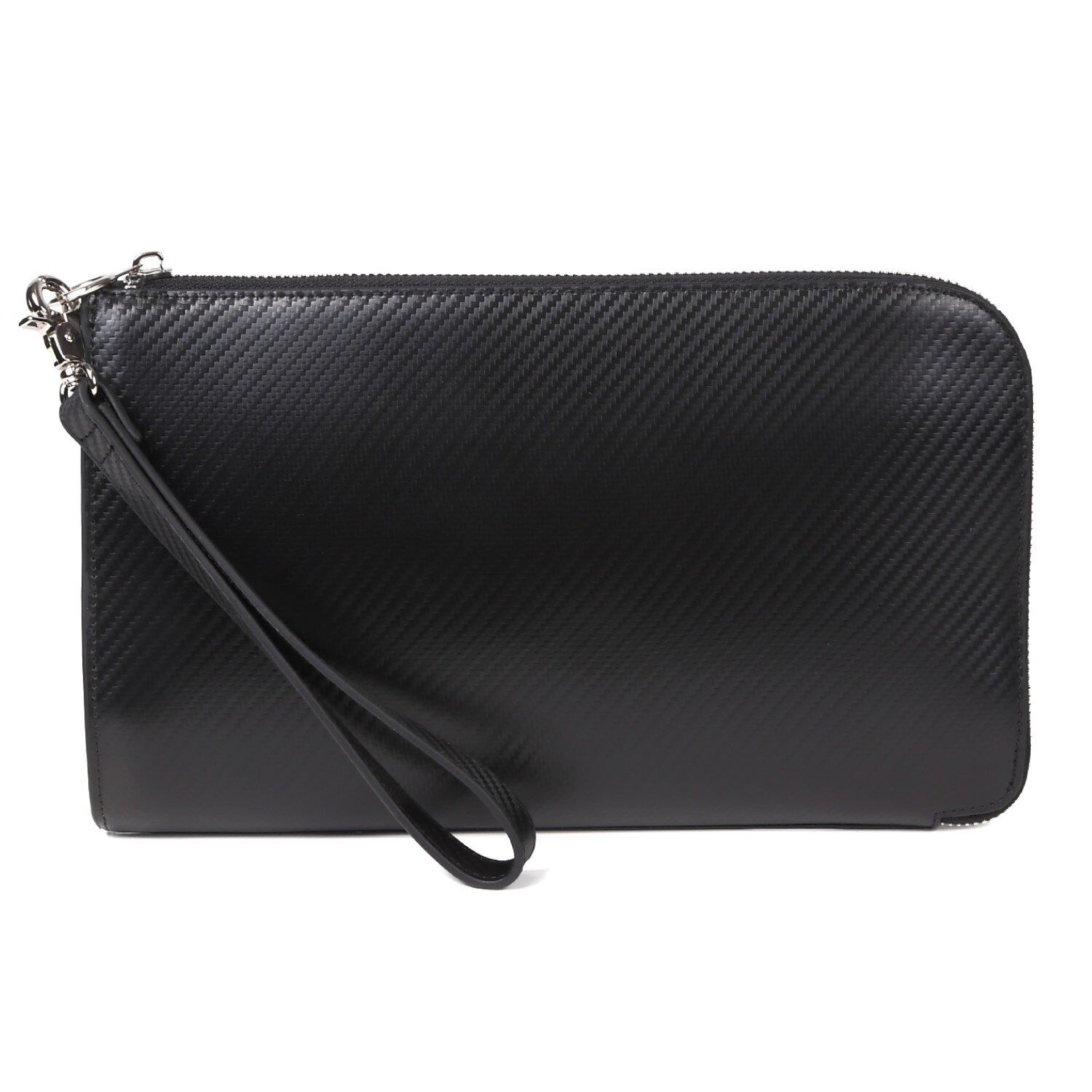 [ムラ] クラッチバッグ メンズ 本革 レザー コードバン調 L字ファスナー カーボンレザー