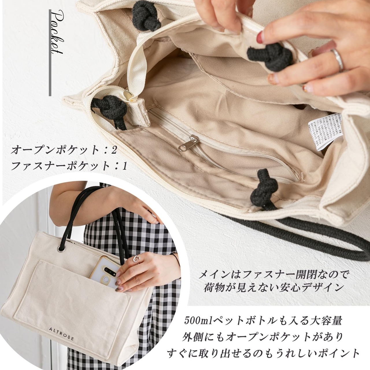 [クロスマーベリー] キャンバストートバッグ ファスナー付き 軽量 小さめ ハンドバッグ 手提げかばん 大人 R39