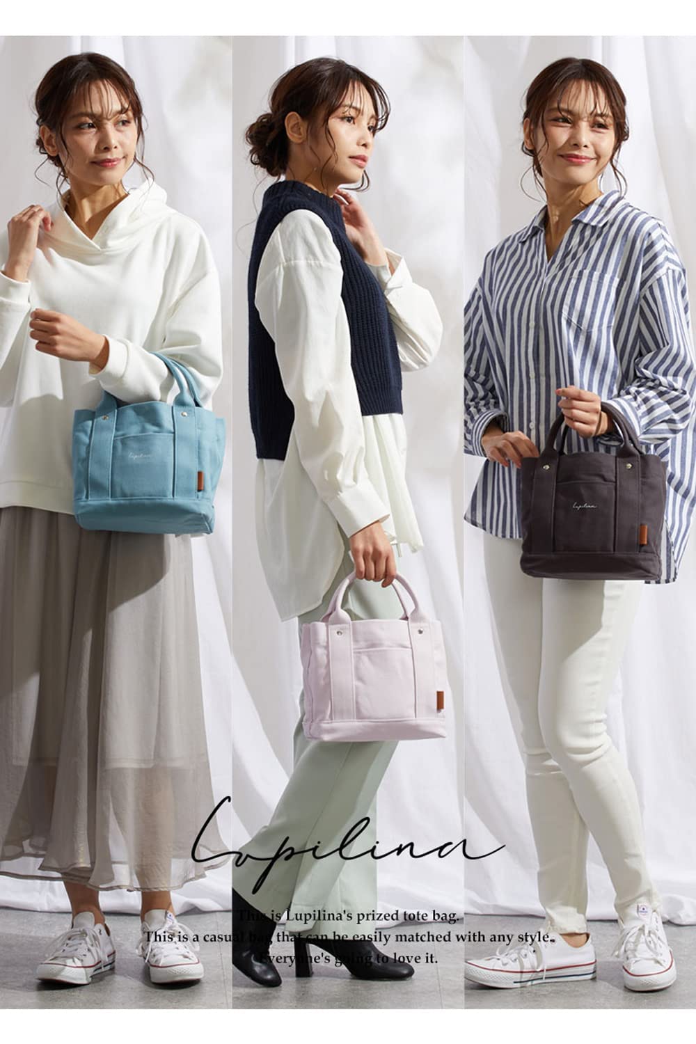 [Lupilina] トートバッグ 鞄 キャンバストートバッグ シンプルで洗礼された上質生地、絶妙な使いやすさ 見た目以上の収納力 3つ仕切り 外内ポケット 自立 マグネットで閉まる 底にICカード入れ 定期入れ 長財布も入る ミニトートバッグ (28334)