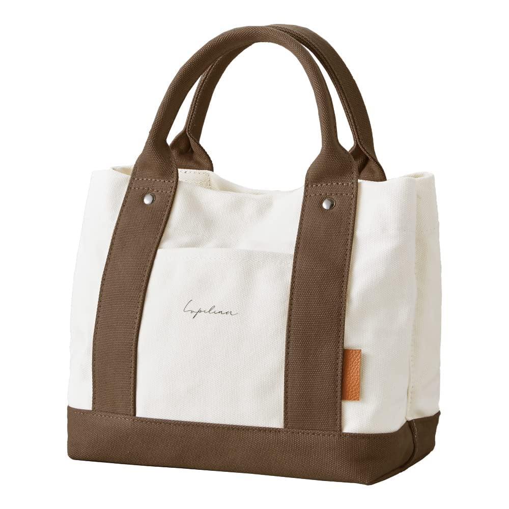 [Lupilina] トートバッグ 鞄 キャンバストートバッグ シンプルで洗礼された上質生地、絶妙な使いやすさ 見た目以上の収納力 3つ仕切り 外内ポケット 自立 マグネットで閉まる 底にICカード入れ 定期入れ 長財布も入る ミニトートバッグ (28334)