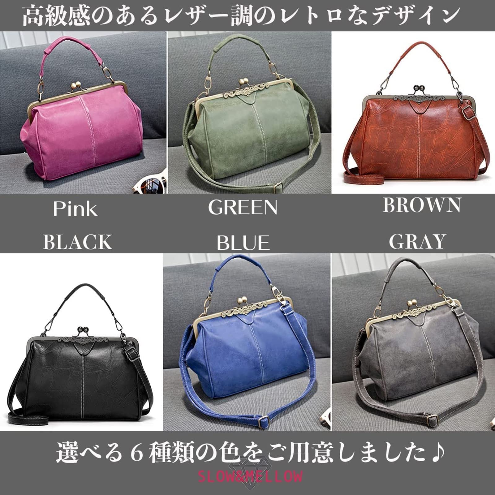 【2022最新】[SLOW&MELLOW] ハンド バック ショルダー 2WAY レディース レザー 調 レトロ バッグ カバン がま口 7カラー