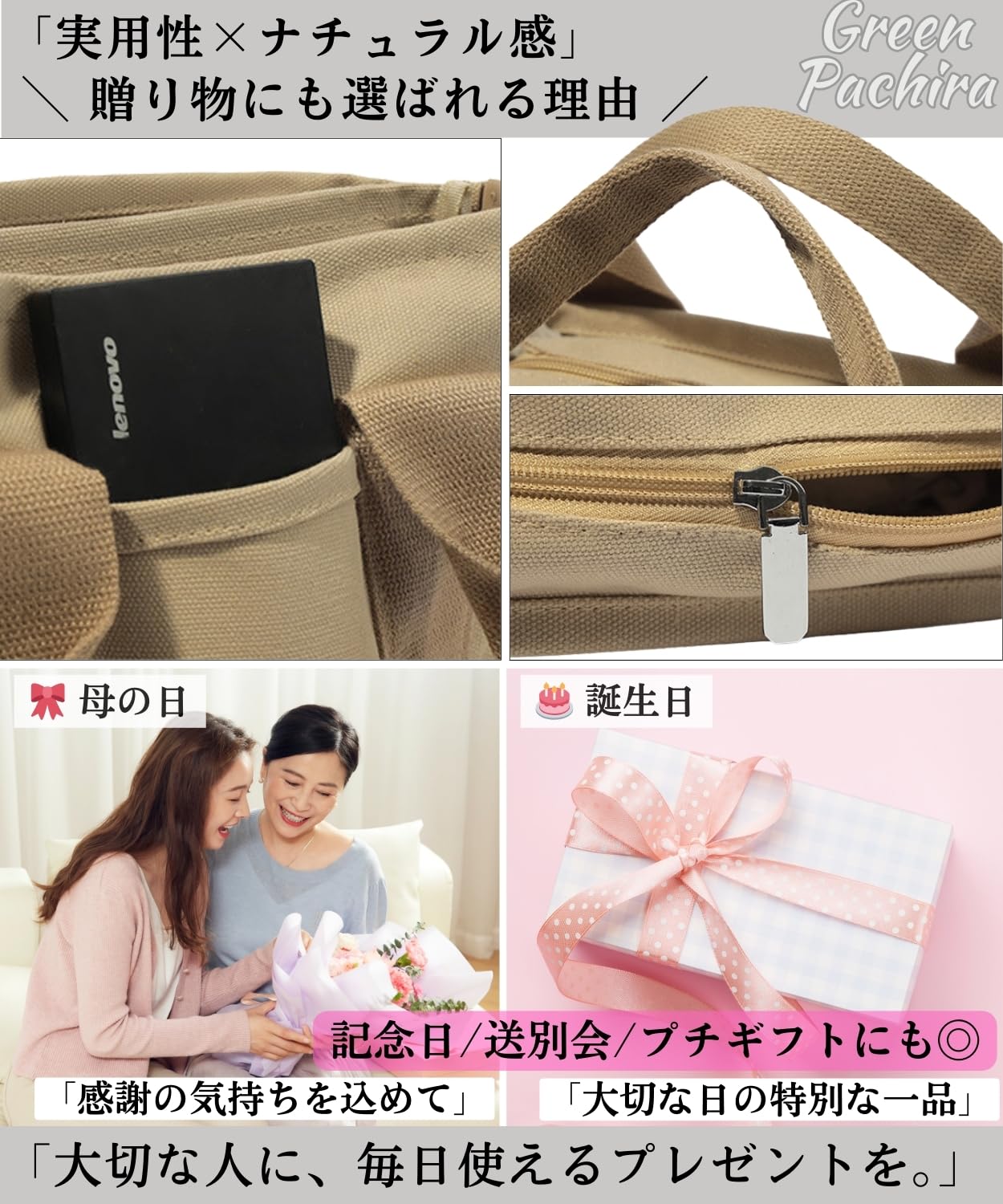 【数量限定】[グリーンパキラ] はんぷ手提げバッグ トートバック 帆布製 キャンバスバッグ 2WAY ペットボトルが入る ショルダーバッグ 女性用 人気 50代 レディース 斜めがけ てさげかばん ハンドバック | allureshop