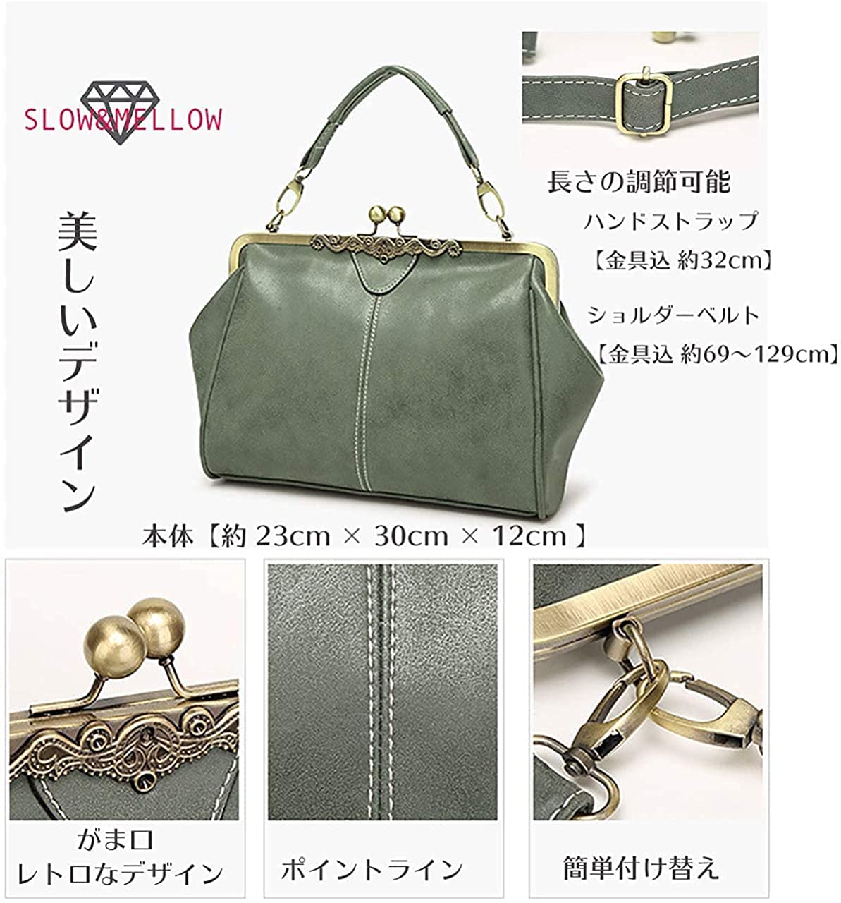 【人気商品】[SLOW&MELLOW] ハンド バック ショルダー 2WAY レディース レザー 調 レトロ バッグ カバン がま口 7カラー