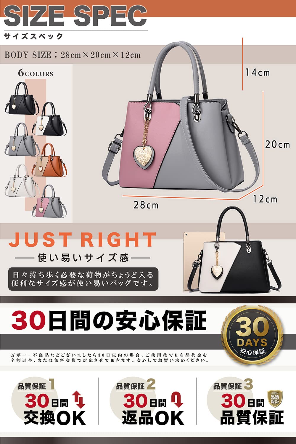 【シンプルデザインでシーン問わず大活躍】斜めに入った切り替えラインが特徴の大人かわいいバッグです。ハート型のアクセサリーで華やかさを、金具の落ち着いたシルバー色で大人っぽい上品さがキマリます。