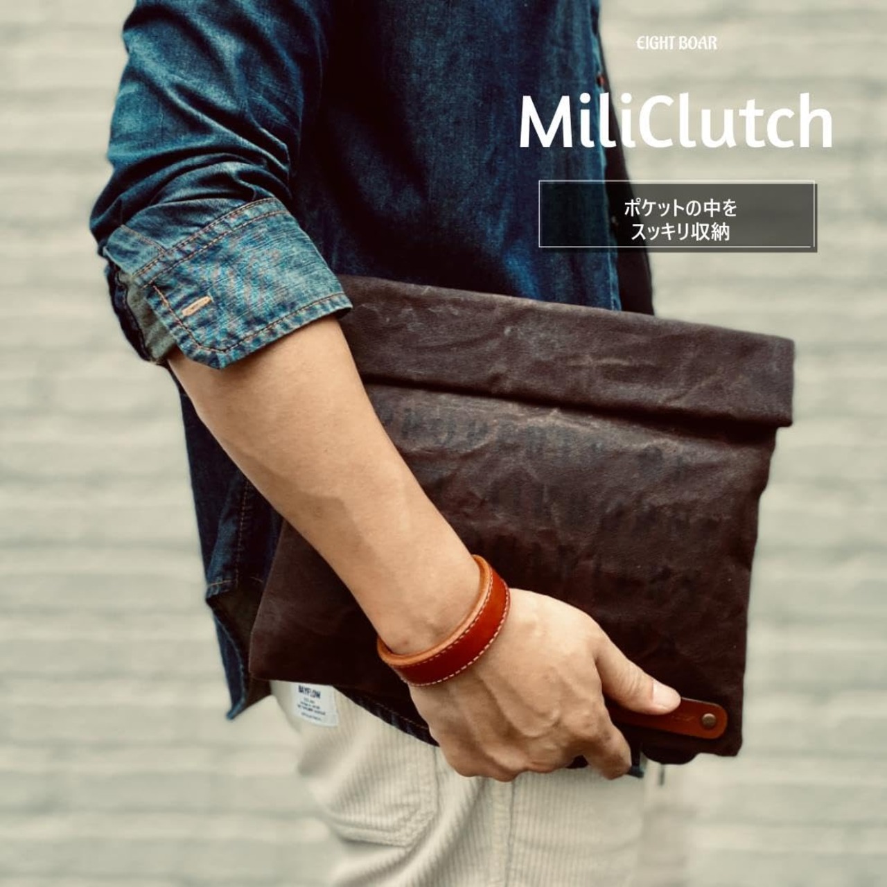 [エイトボアー] ◆OIL WAX 加工帆布 ミリタリークラッチバッグ クラッチ 焚き火台入れ アメリカン セカンドバッグ◆茶k15 緑b57