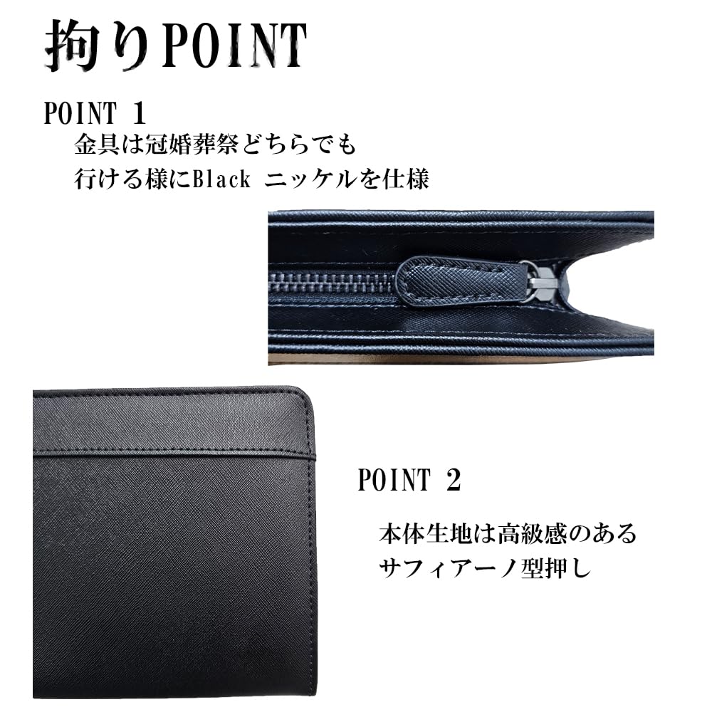 開閉はファスナータイプ。冠婚葬祭どちらでも使用出来るようブラックニッケルカラーを採用。