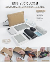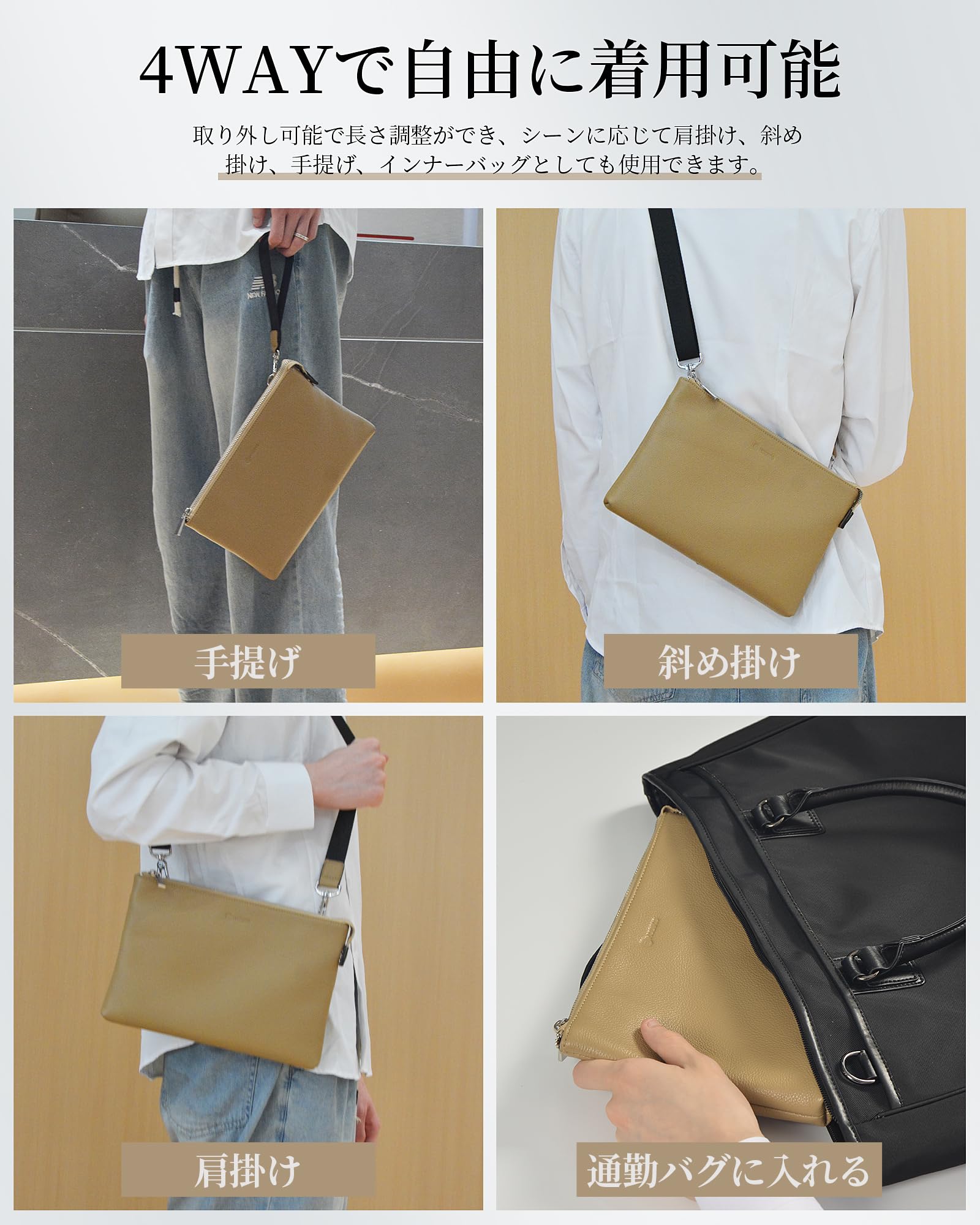 【大容量クラッチバッグ】メンズショルダーバッグは、18cm x 26cmのB5サイズで収納力があり、タブレット、スマホ、メガネ 、折りたたみ傘を楽々収納できます。ファスナー開閉部分は2つのポケットと8枚のカード専用スペースを搭載し、財布を持ち歩かなくても便利です。頻繁に使うアイテムを入れられる磁気ボタン付きの外側ポケットで、素早く取り出せます。