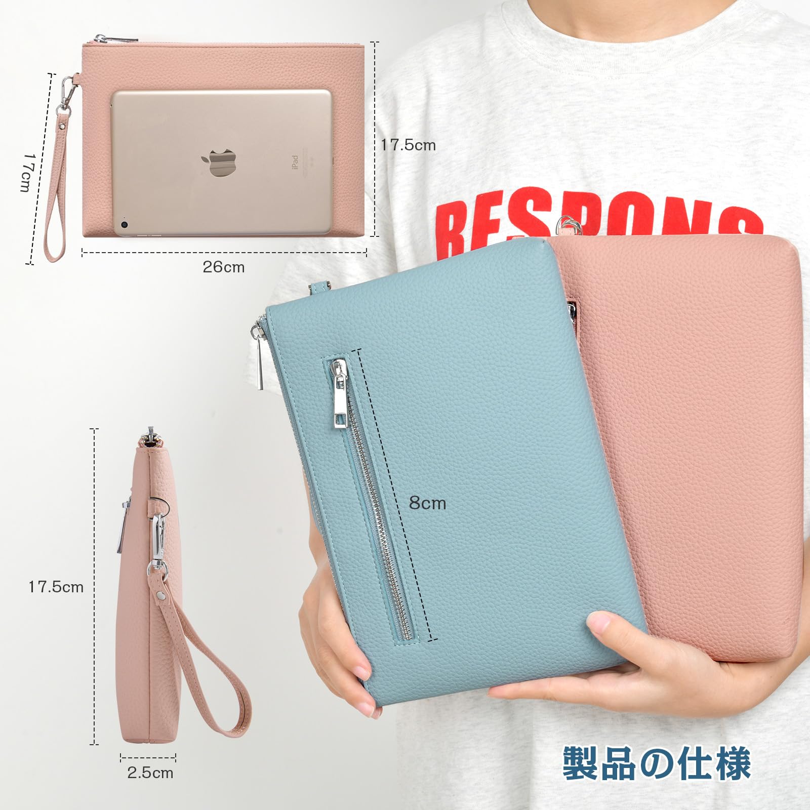 【クラッチバッグ 製品サイズ】長さ26cm、幅17.5cm、厚さ2.5cm。取り外し可能な短いハンドストラップが付属しています。クラッチバッグ 結婚式、クラッチバッグ レディース、本革の質感に近づける、高品質で耐久性のあるフェイクレザーを使用しています。急な雨でも問題ありません。