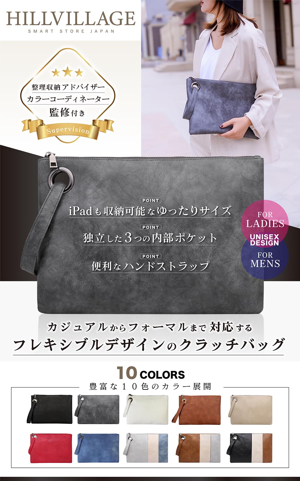 クラッチバッグ セカンドバッグ 【整理収納アドバイザー・カラーコーディネーター監修】 iPad 書類 A4 【内側3ポケット&ハンドストラップ付き】 カジュアル フォーマル 結婚式 冠婚葬祭