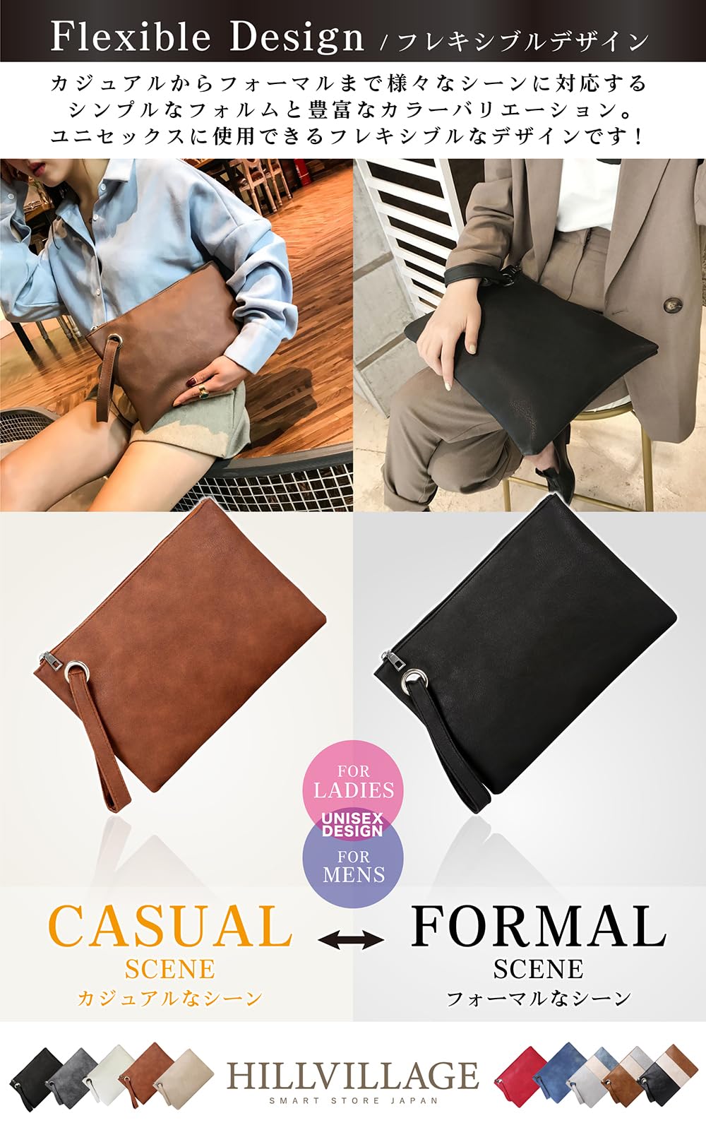【カジュアルからフォーマルまで対応するフレキシブルデザイン】このクラッチバッグは、整理収納アドバイザー兼カラーコーディネーターの百田千穂氏の推奨を受けて設計され、どんな場所にも適応します。高品質のPUレザーを採用し、本革のような質感で快適な手触りを提供します。どんなシーンにも自然と溶け込むデザインを実現しています。