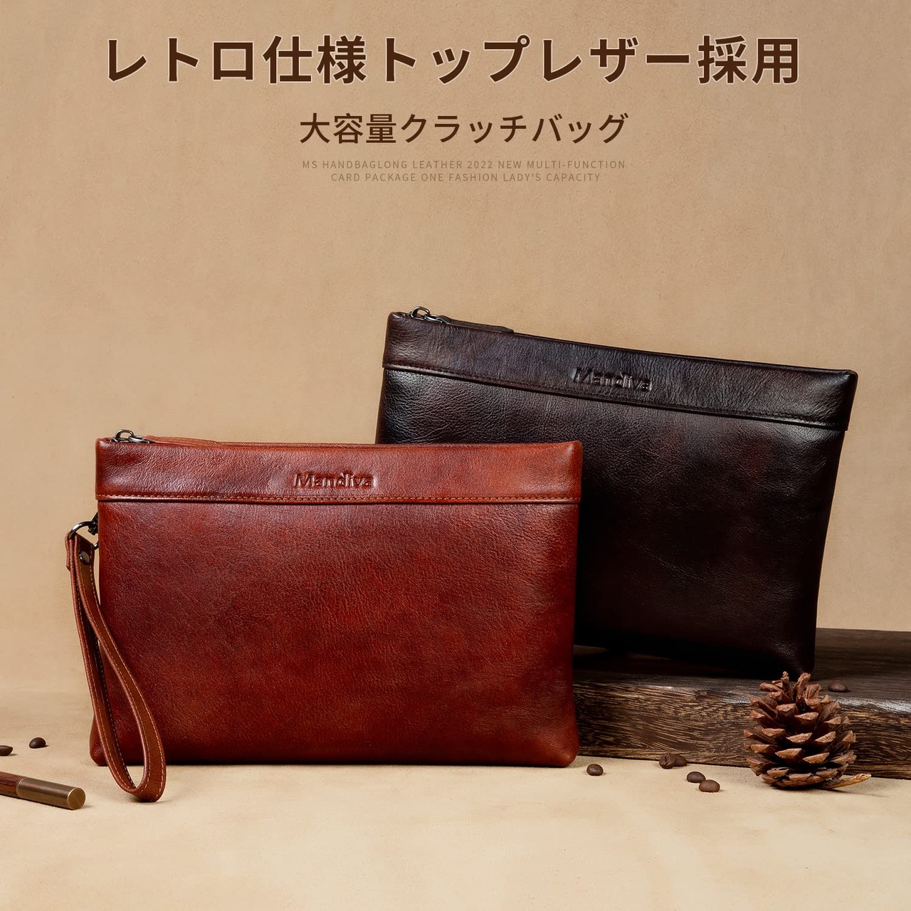 [Mandiva]クラッチバッグ セカンドバッグ メンズ 結婚式 本革 ハンドバッグ 大容量 トップレザー (キャメル02)